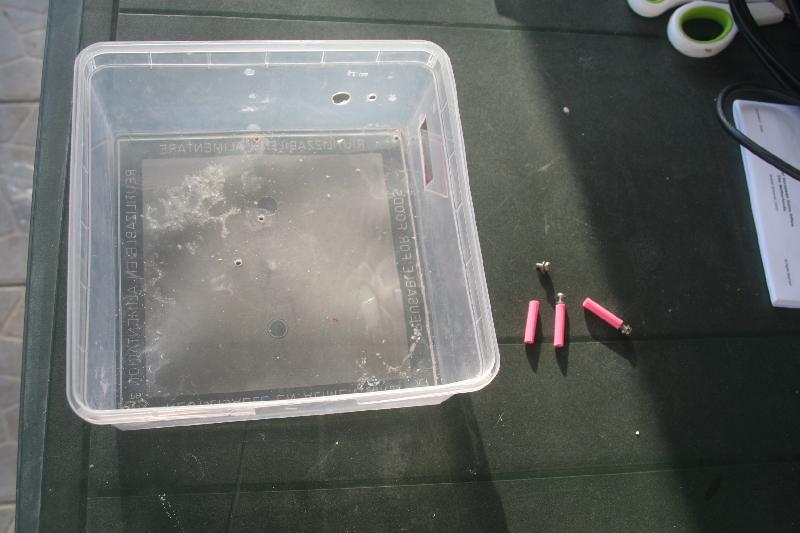 Alors, au début, je pensais réutiliser le boitier d'un PC mort ... sauf que ça ne protégeait rien du tout vu les ouvertures qu'il y a dedans et le fait que tous les connecteurs devaient être déportés. J'ai donc choisi la solution extrême : la boite de bonbons !