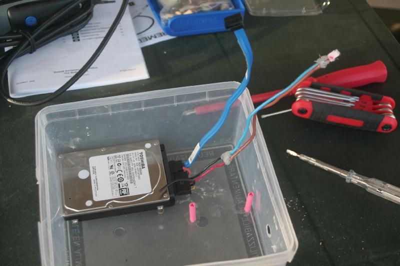 A noter que le PI peut alimenter un disque 2,5' qui ne nécessite que du 5v ... j'ai fait l'erreur de penser que ce câble était courant donc il a fallu que je joue du fer à souder (paske plus de 5E avec le port pour ce genre de câble, c'est quand même un peu abuser).