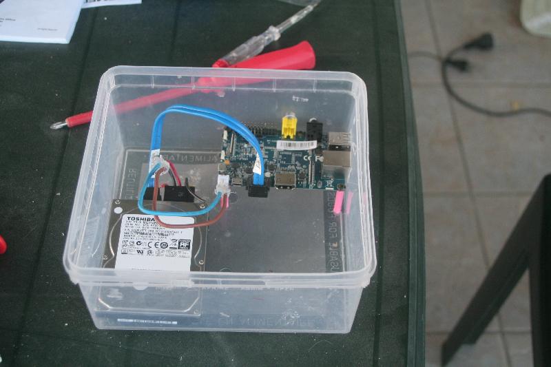 On notera les 4 chevilles pour soulever le BananaPI : la seule chose que j'ai acheté avec évidement le disque et le PI. Tous le reste est de la récup.