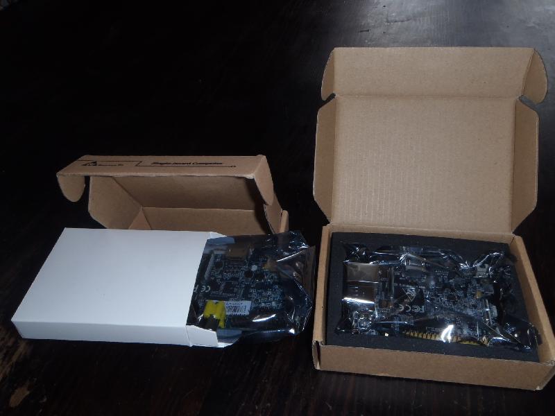 Le BananaPro arrive dans une boite légèrement plus grande que son ainé et est protégé par un rembourrage de mousse et non par 2 simples boites. Il est de-plus accompagné par une antenne, WiFi oblige, et une petite notice qui reprend les caractéristiques. Elle n'apporte pas grand-chose avouons le, mais ça fait toujours plus "pro".