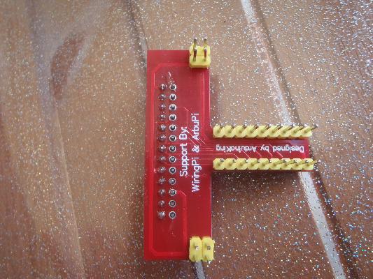Le modèle 26 broches en ma possession sort en plus les alimentations +5v, +3.3v et leur masse vers les rangées dédiées sur le côté de la planche à pain ; ce n'est pas le cas des 40 broches que j'ai vu. Elle dispose en plus d'une LED connectée au 5v indiquant que le montage est sous tension. Un gadget qui va consommer quelques milli-ampères pour ... rien étant donné que le PI n'est qu'à quelques centimètres.