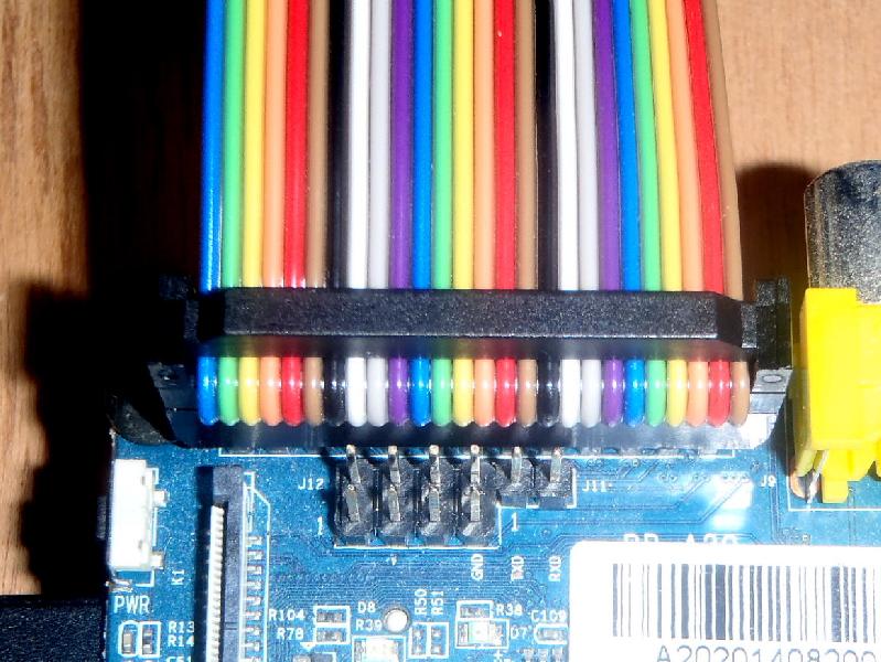 Le port 26 broches d'un BananaPI, Con3, est compatible électriquement avec celui d'un Raspberry (hormis que chaque pin à plus de possibilités et qu'on ne peut alimenter notre SBC par ce biais) ... mais il est accompagné d'un connecteur supplémentaire 6+2 broches, nommé J12 (que j'ai utilisé pour la TéléInfo) et J11 pour la console.