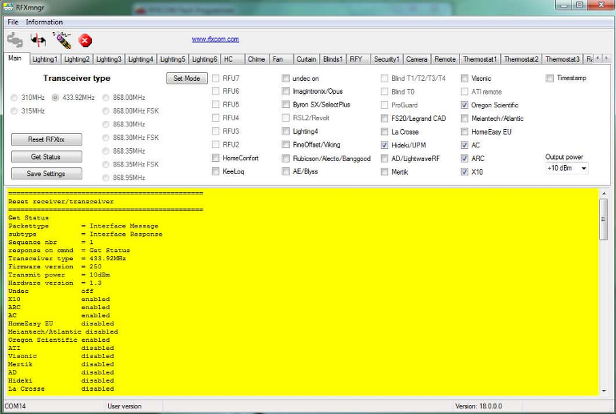 Attention, une mise-à-jour efface complètement la configuration du RFXtrx : c'est pourquoi on ne le fait généralement qu'une seule fois, à sa réception.