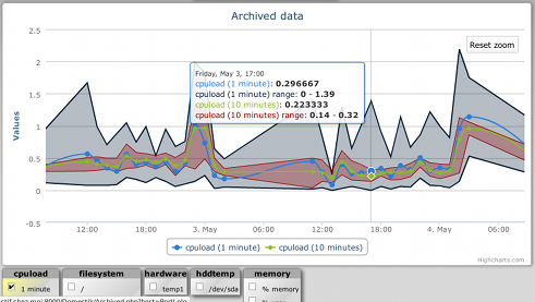 Recent data are kept with maximum graduality and are accessible using "Live data".