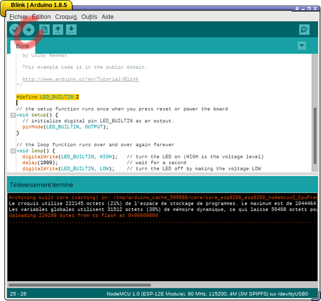 Puis il est téléversé en quelques secondes : la LED se met à clignoter.