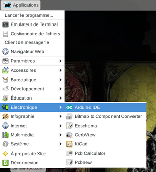 Puis lancer le script install.sh (en tant que root) qui créera une entrée dans le menu électronique et liera les fichiers .ino avec cette IDE.