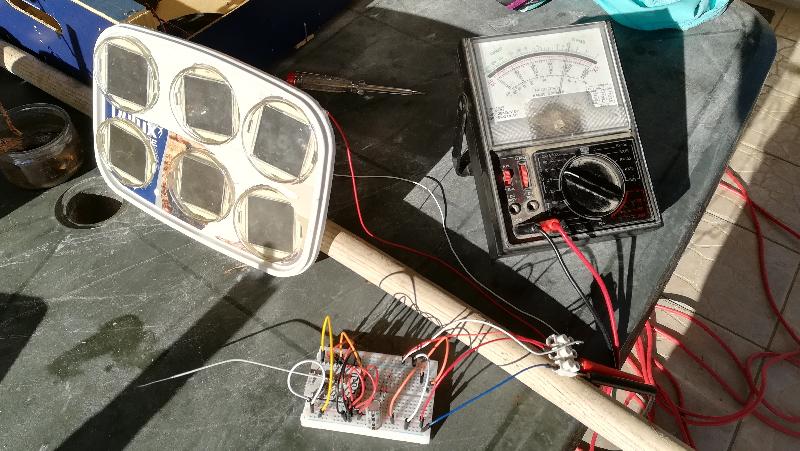 Comme on peut le voir, j'ai décidé de dédoubler les cellules photo-électriques : elles maximisent la charge des accus y compris par temps couvert.
