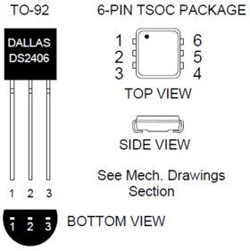 Le DS2406 permet d'adresser 1 ou 2 GPIOs depuis un bus 1-wire. Il se présente soit sous la forme