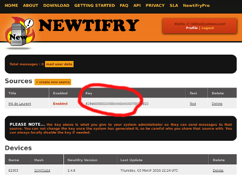 On retrouve ces informations sur le site de Newtify : il est important de noter la clef que nous allons réutiliser la clef dans ...