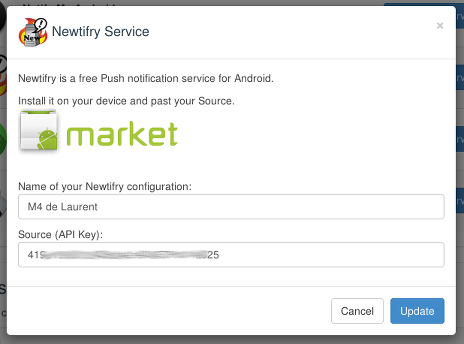 Côté Android, il faut installer une application qui recevra les messages de GCM et affichera une notification : j'ai choisi Newtifry.