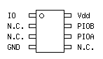 Je vous laisse relire mon billet précédent où j'avais présenté ce circuit, son brochage et ses équivalents ... mais ici, nous avons besoin de 2 PIOs et donc d'utiliser la version TSOC.