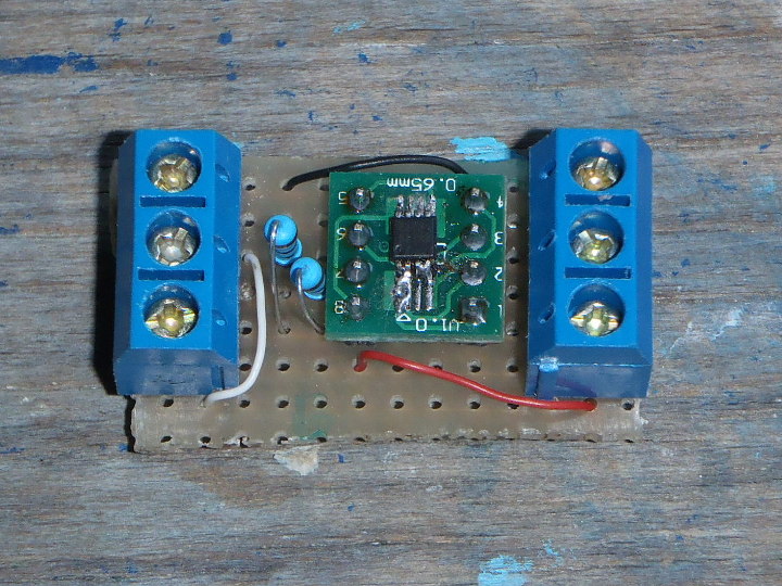 A l'exception des numéros des broches, le schéma reste strictement identique ... mais est encore (beaucoup) plus chiant à souder ... même avec un adaptateur uSOP vers DIL : 0,65mm, c'est vraiment petit et c'est bien la première fois que je suis obligé de souder quelque chose avec une loupe !