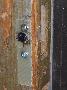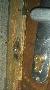 Pour le verrou du haut, j'avais de la place, j'ai donc utilisé un vieux poussoir "bouton reset" sur un PC HS. Sa course est suffisante pour que je puisse le placer dans le prolongement du pêne.