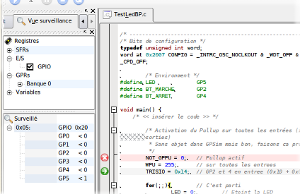 C'est déjà bien, mais on reste sur sa faim lorsque l'on sait ce dont GPSim est capable au niveau de l'interaction avec les composants extérieurs. L'idéal serait d'avoir à la fois l'IHM de PIKLab pour le côté gestion de projet et la possibilité de tracer le source C et celle de GPSim pour sa puissance.