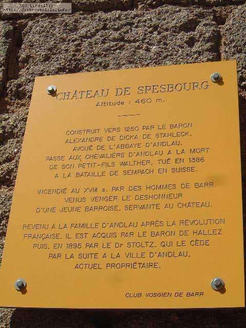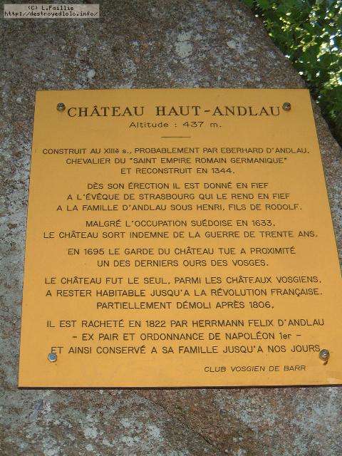 Ce château du XIIIe siècle est très bien conservé car habité jusqu'en 1806. Cependant, dès 1796 le château est acquis par un commerçant pour le démanteler : partiront ainsi boiseries, sculptures, toitures et ornements. La famille d'Andlau rachète ce qu'il en reste en 1822 et il est classé monument historique en 1927.