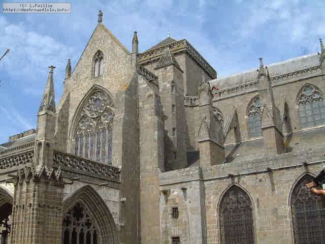![]() ![]() Dol peut être considérée comme la frontière entre la Bretagne et la Normandie. Jusqu'au 10e siècle, la mer arrivait au pied de la ville, mais les dépôts marins et une digue ont fait reculer la mer jusqu'au Mont Saint Michel. En 848, le duc de bretagne Nominoë y fut couronné et fit de Dol un évêché dont les archevêques étaient les primats de Bretagne, jusqu'au XIIe siècle. L'évêché disparut en 1801. ![]() ![]() Le terrain étant très plat, la cathédrale