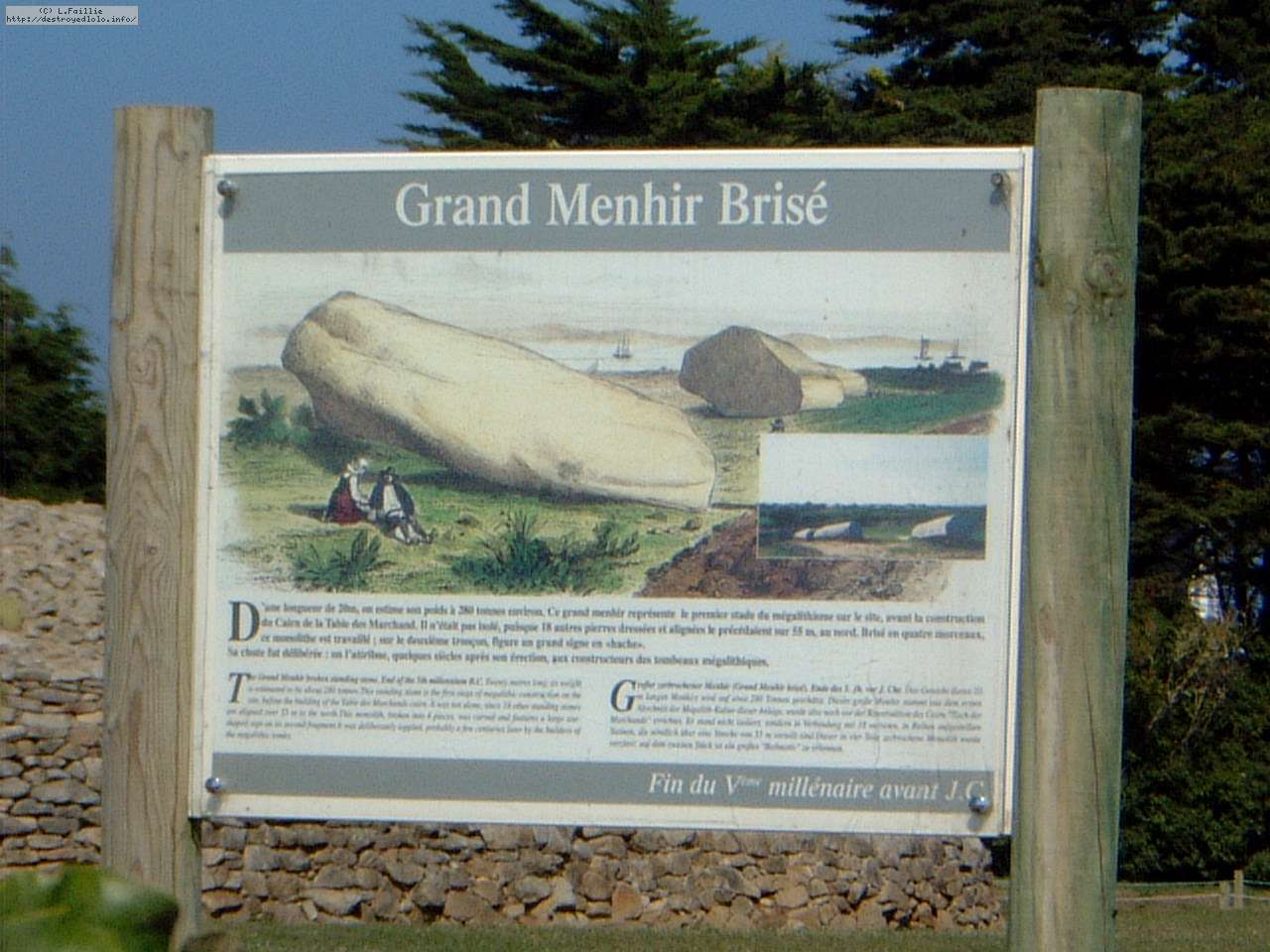 Le Grand Menhir Brisé : d'une longueur de 20 mètres et d'un poids de 350 tonnes, il gît maintenant, brisé en 4 morceaux.