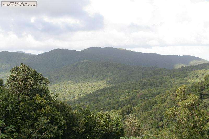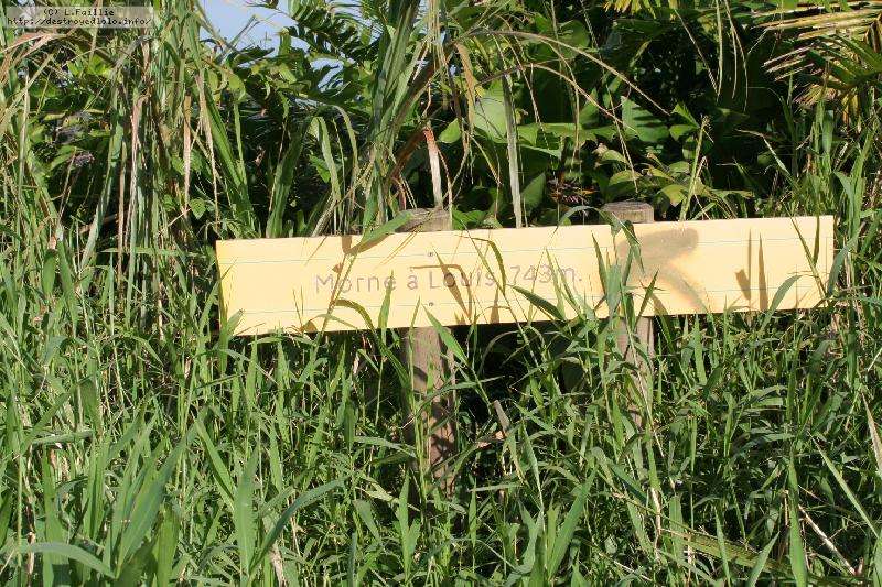 Notre guide touristique nous suggérait d'aller jusqu'au sommet de la morne à Louis où un panorama exceptionnel nous attendait ... sauf que depuis sa publication, la végétation a bien poussée et il faut faire montre de moultes contorsions pour voir quelque chose ...