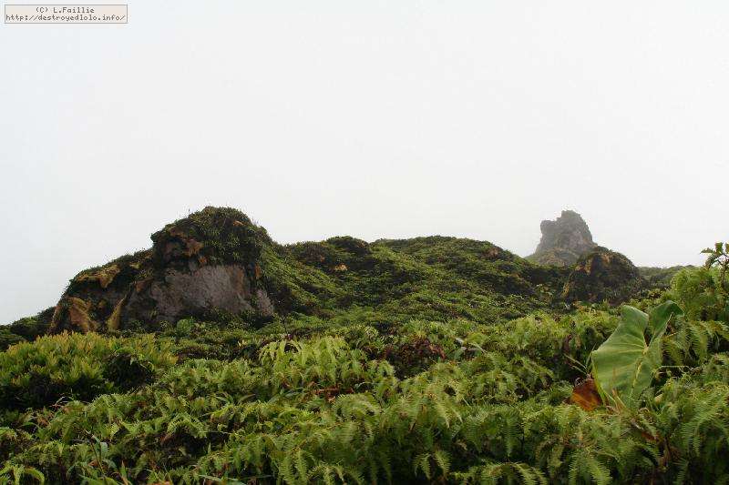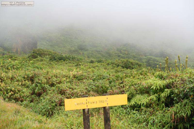 Soudain, la foret s'ouvre : nous sommes arrivés à la Savane à Mulets. Le contraste est vraiment saisissant entre la forêt tropicale du bas et cette végétation beaucoup plus contrariée.