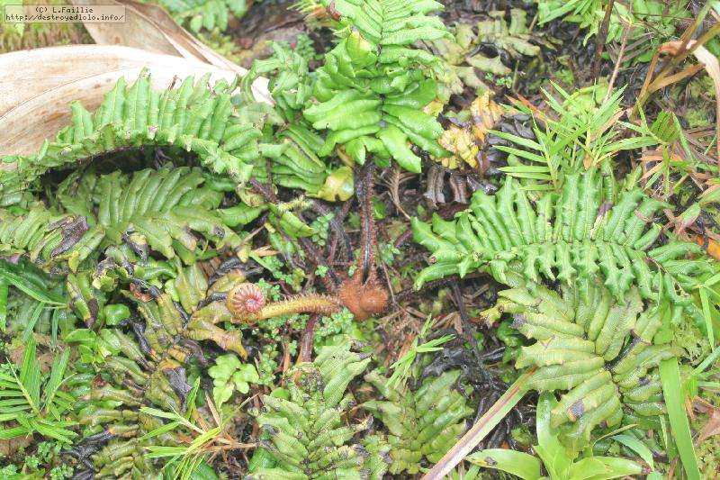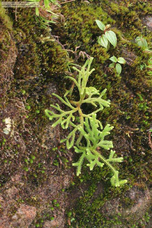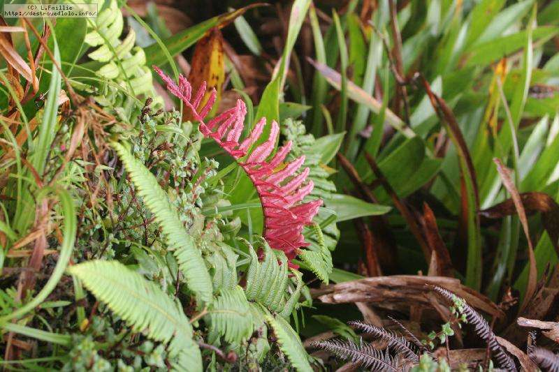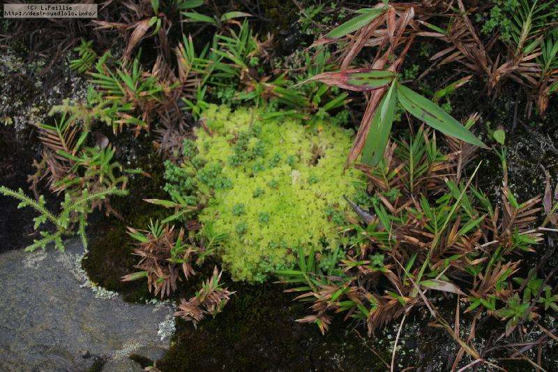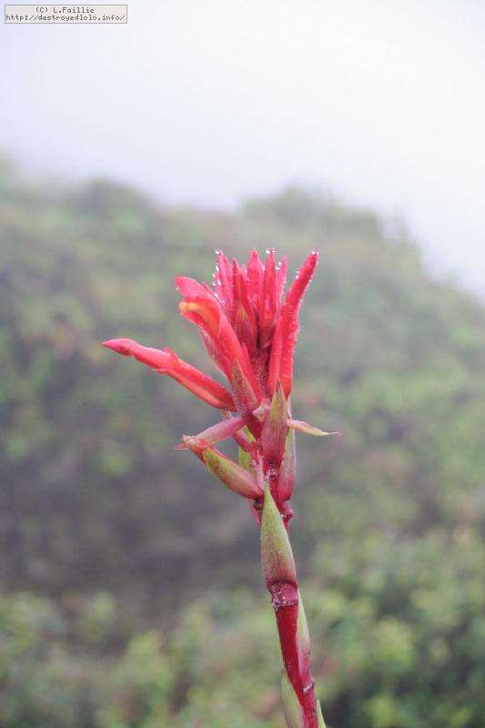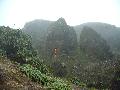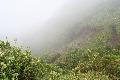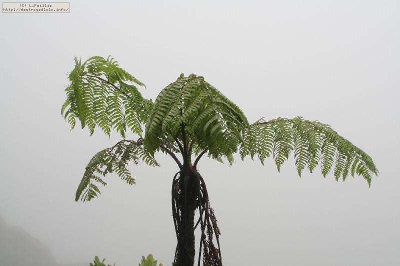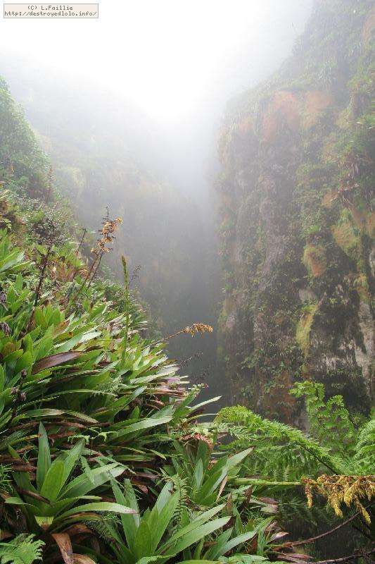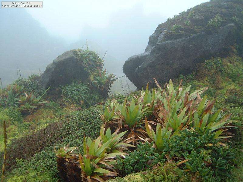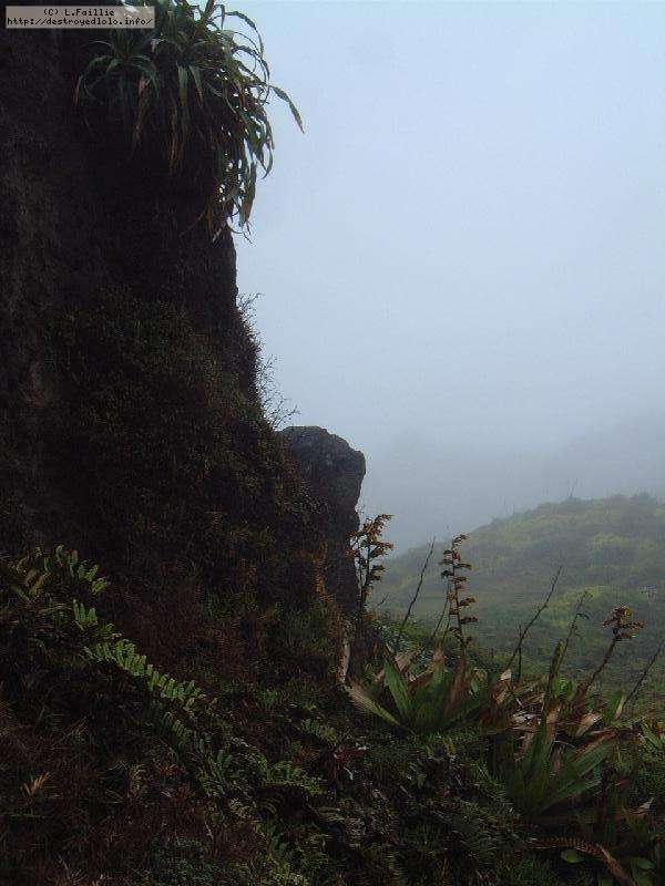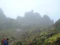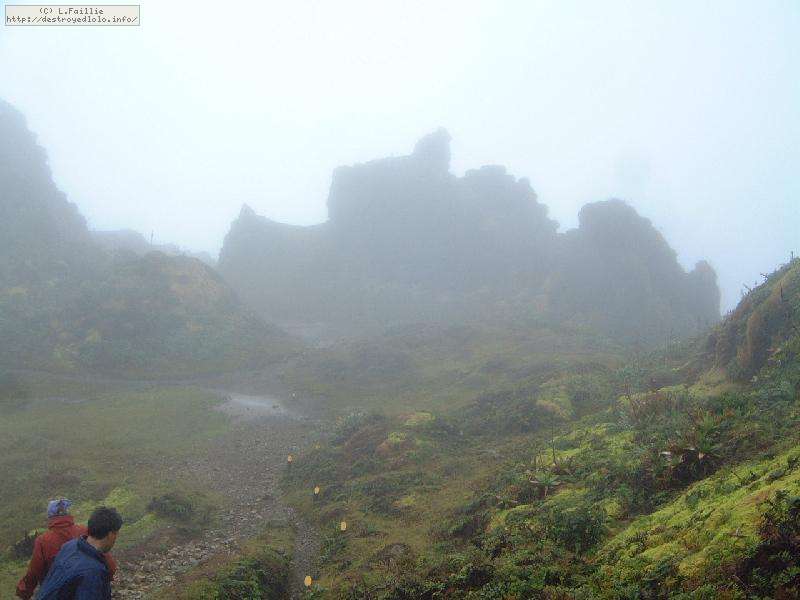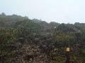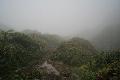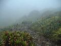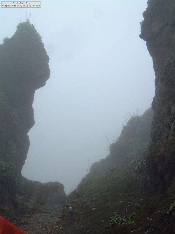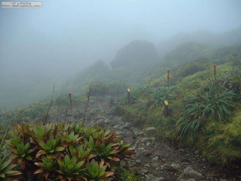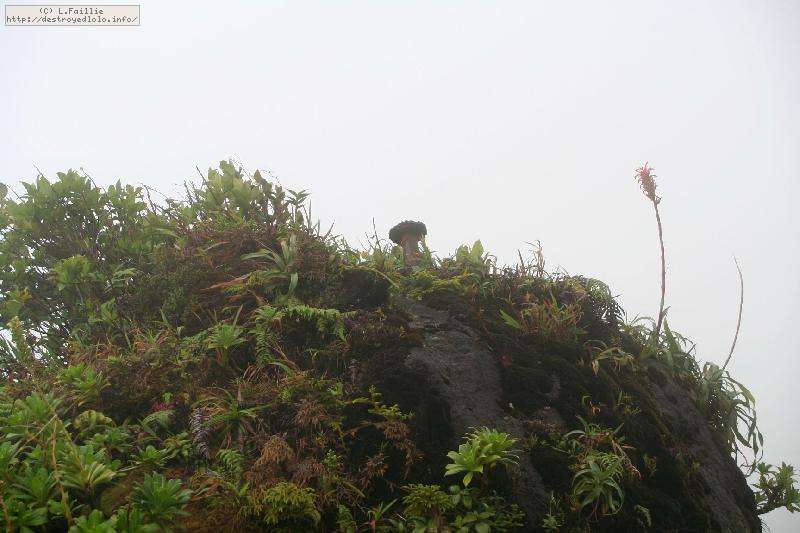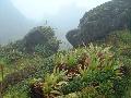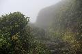 L'ascension se poursuit ... pour nous dans le brouillard. Rien d'étonnant, car le massif reçoit pas moins de 12 m3 d'eau au m2 par an et est quasiment tout le temps bouché. La couleur quasiment fluo de la végétation est un des effets de ce manque de luminosité chronique.