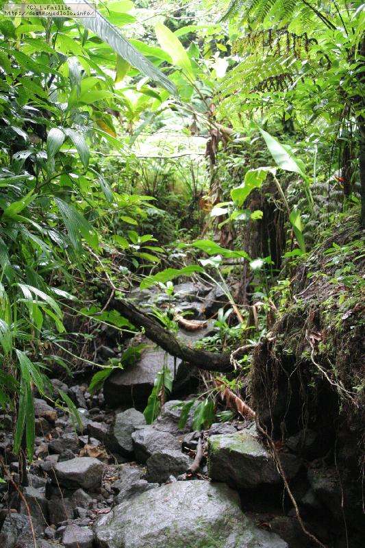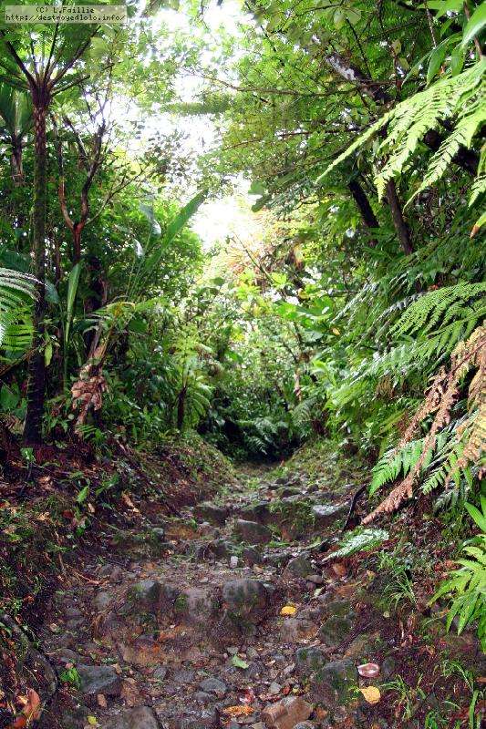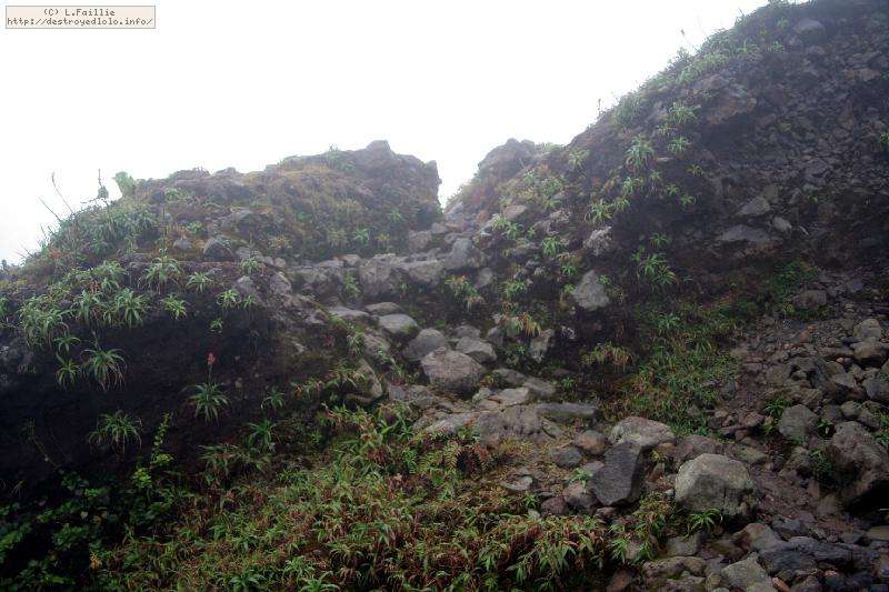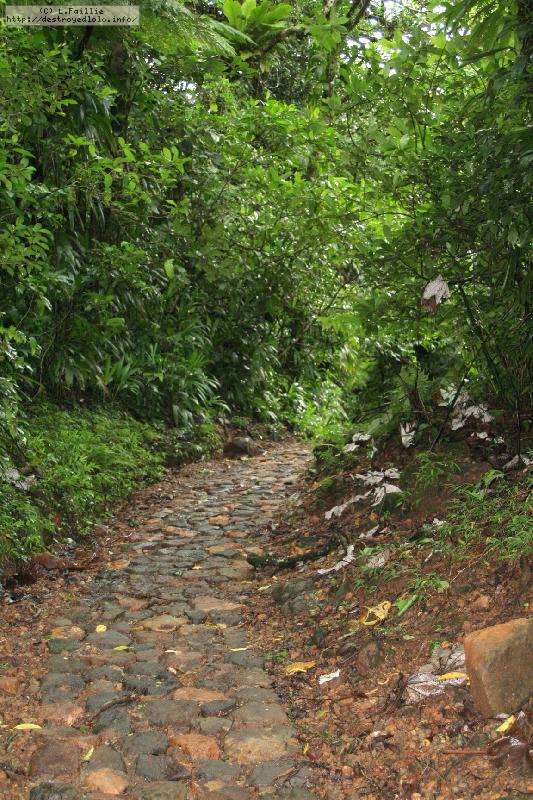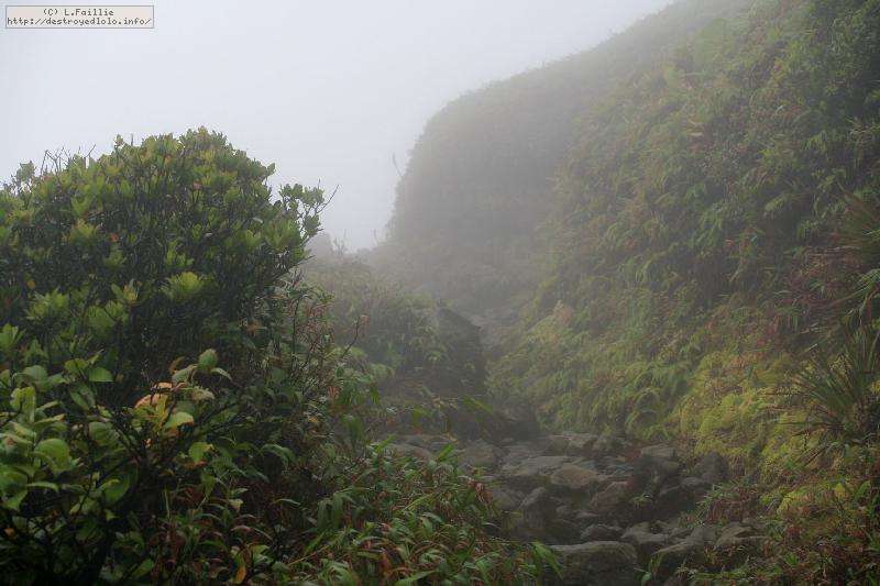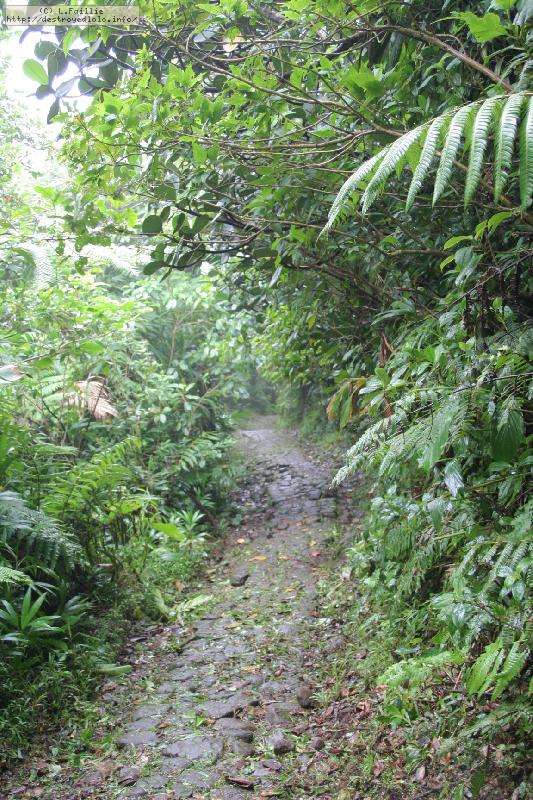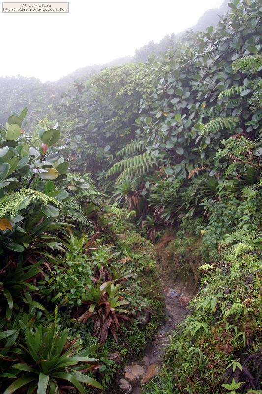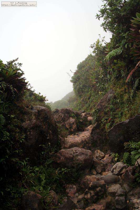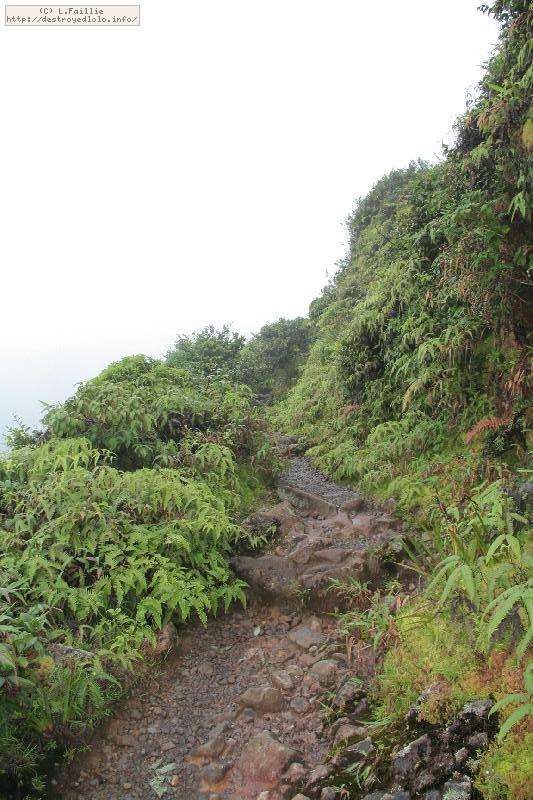 L'ascension commence par un sentier pavé nommé "le Pas du Roy" qui s'enfonce dans une foret encore luxuriante et très humide.