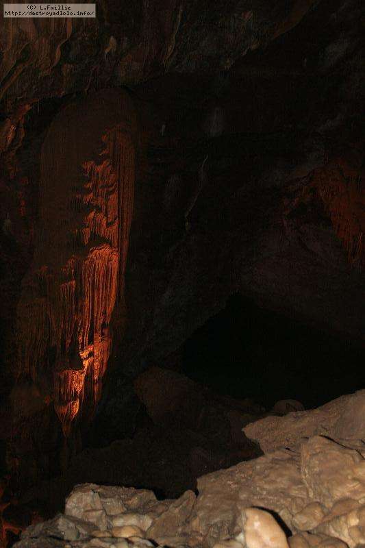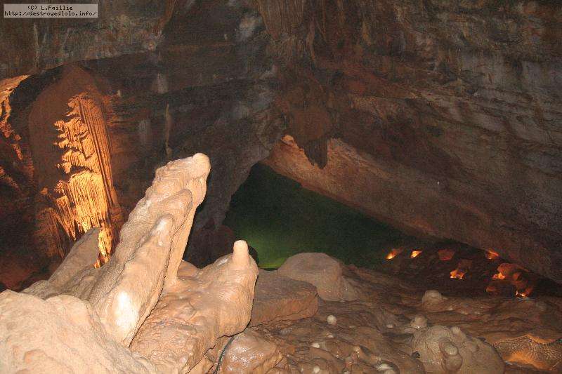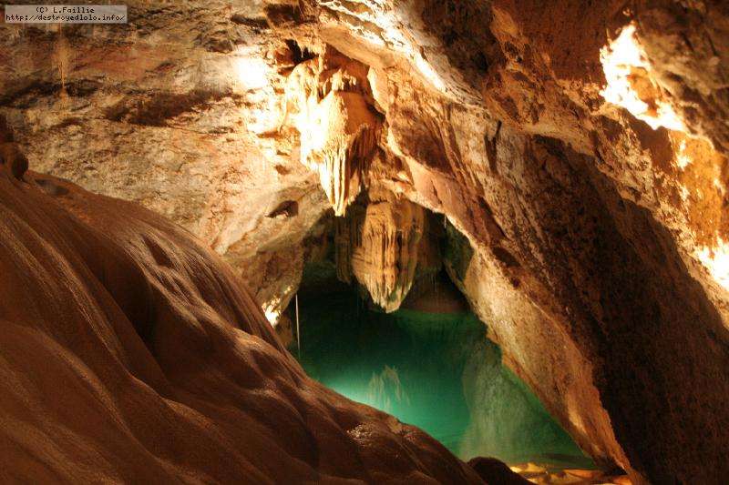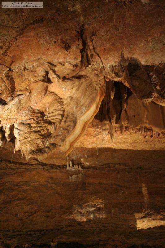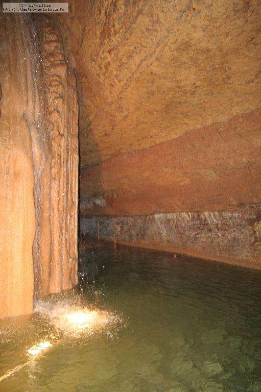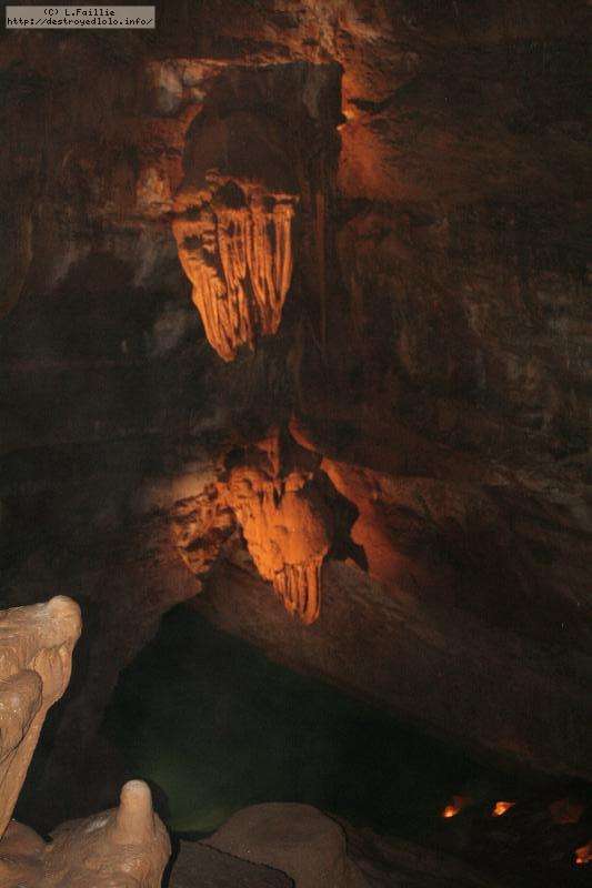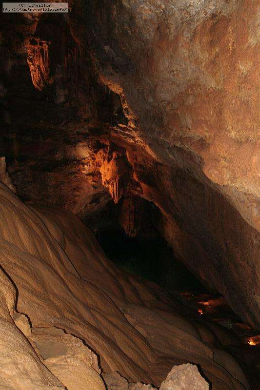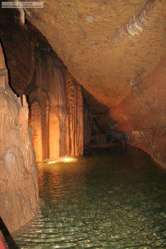 Lorsque la lumière se fait, on reste ébahis : c'est vrai que beaucoup de concrétions rappellent cet animal, mais le clou du spectacle se situe au fond de la galerie où un lac est magnifiquement mis en valeur par l'éclairage. Pas évident d'immortaliser ça surtout quant le pied est resté à la maison.