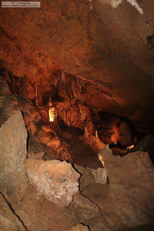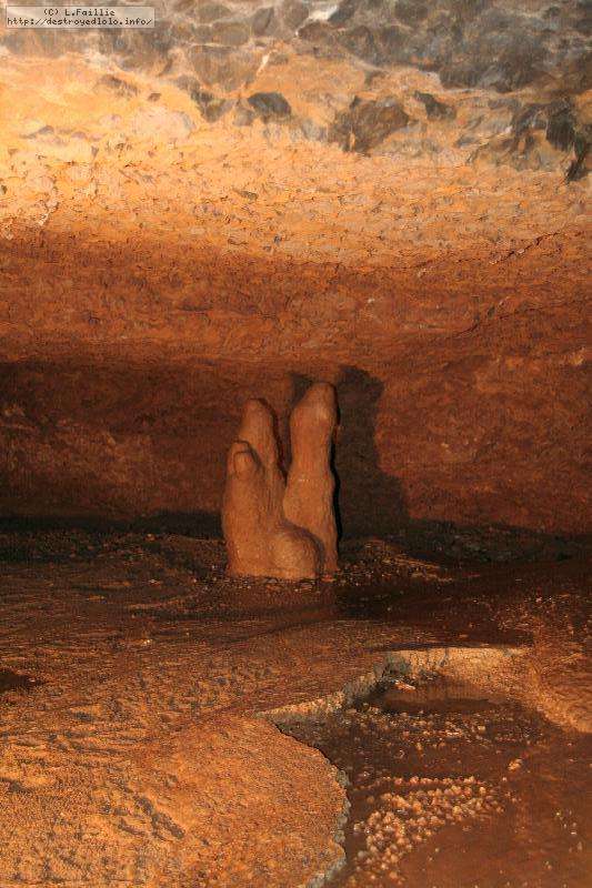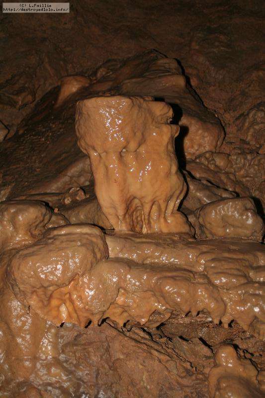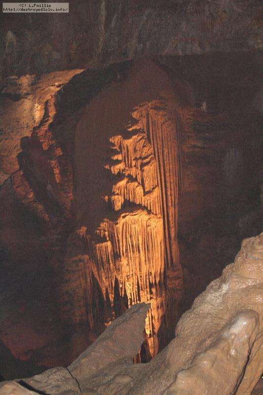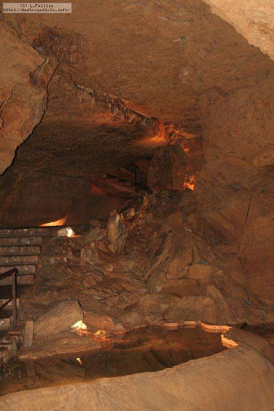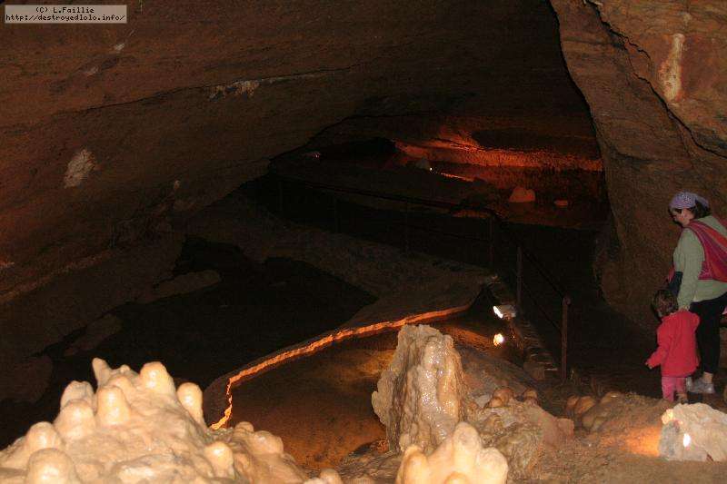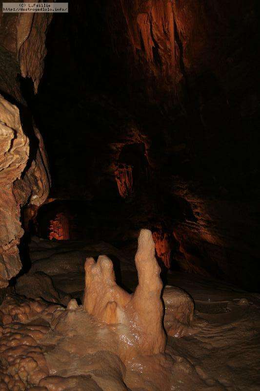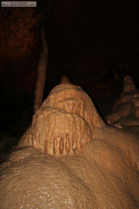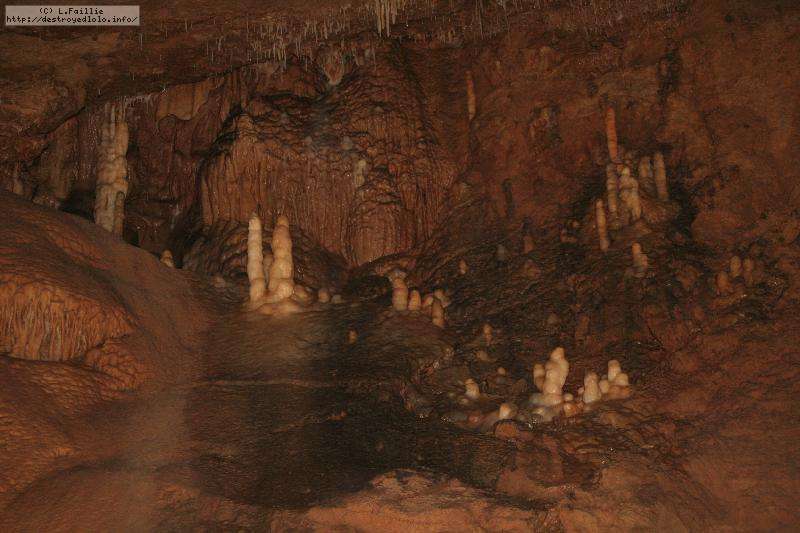 Lorsque la lumière se fait, on reste ébahis : c'est vrai que beaucoup de concrétions rappellent cet animal, mais le clou du spectacle se situe au fond de la galerie où un lac est magnifiquement mis en valeur par l'éclairage. Pas évident d'immortaliser ça surtout quant le pied est resté à la maison.