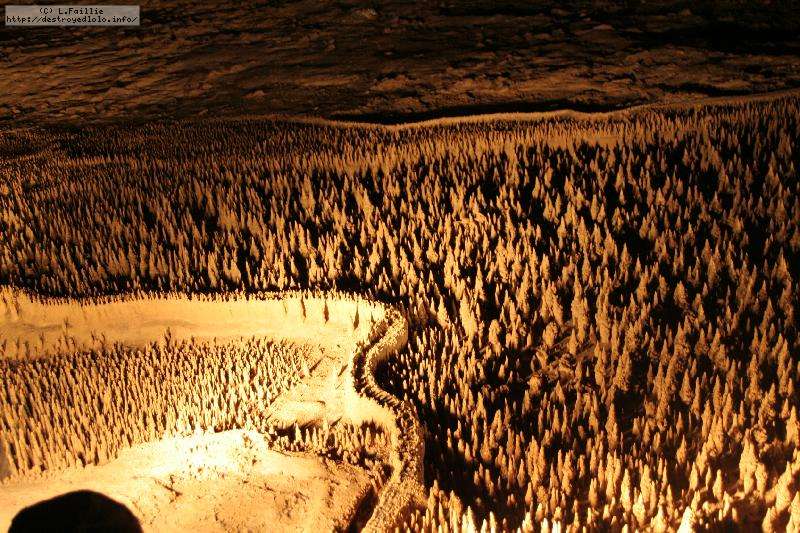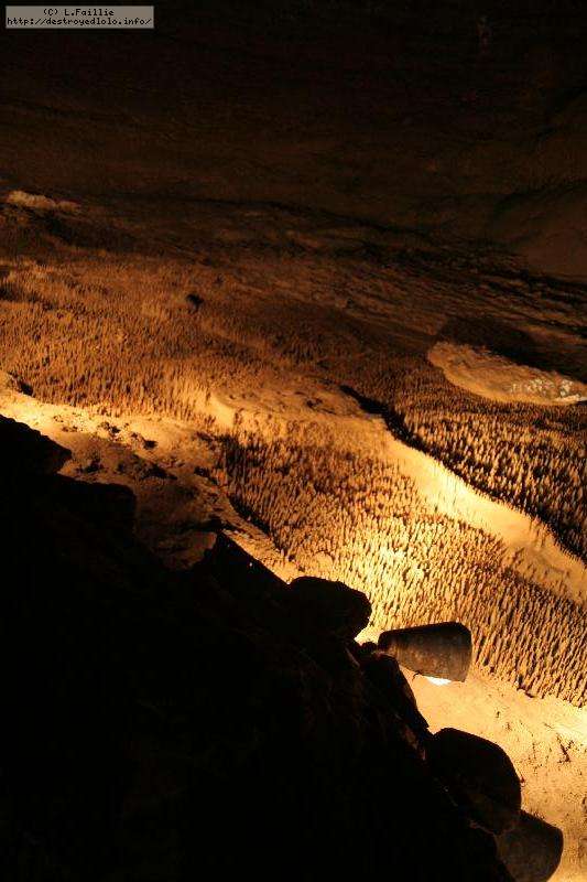 Le point culminant de la visite est bien entendu la découverte des "Cent mille soldats", des milliers de petits stalagmites, pas plus grand que les doigts d'une main. Le calcaire a aussi créé une multitude de petites murailles, le parallèle militaire était évident. Pour les scientifiques, leur création relève encore du mystère ...