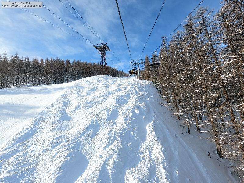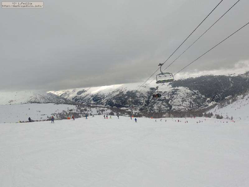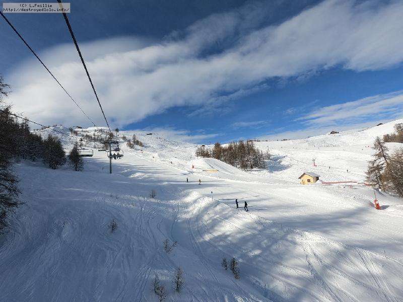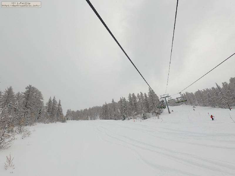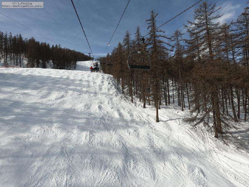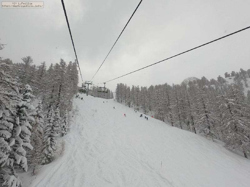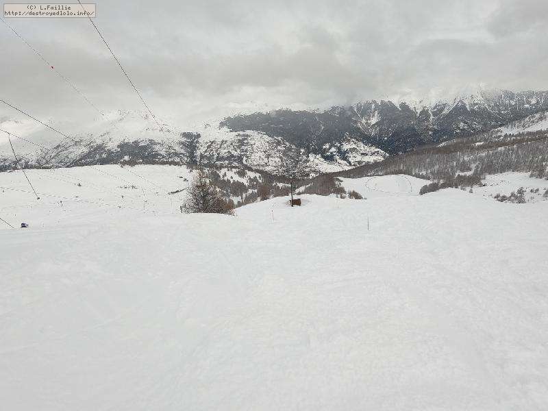 C'est d'ailleurs étonnant : SerreChe ne semble pas aimer le damage, les pistes restent avec les bosses de la veille, qui se marient mal avec ce jour blanc. Pas génial pour les débutants (et accessoirement pour mes jambes endolories). Bref, comme d'hab, on est mieux en hors piste !