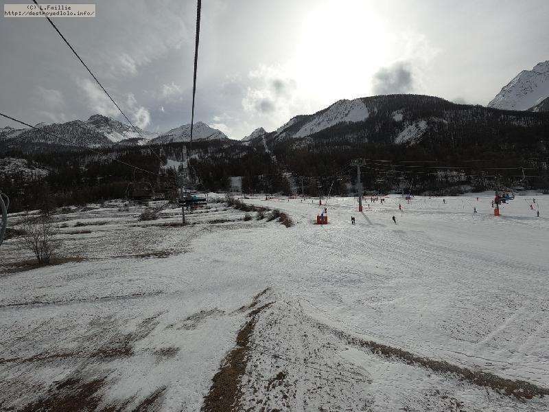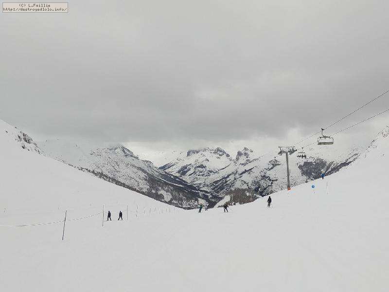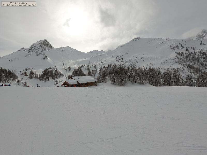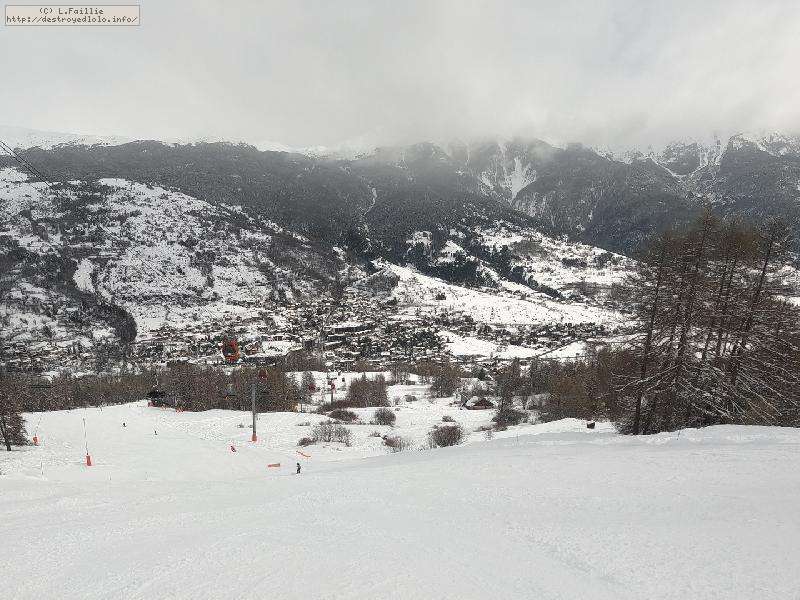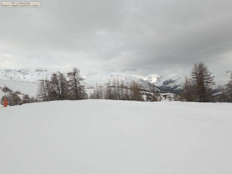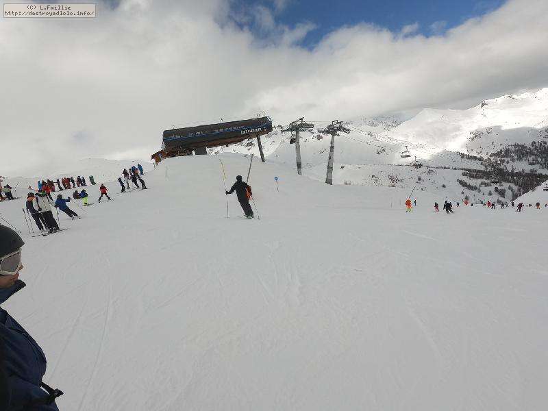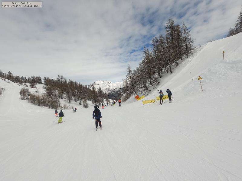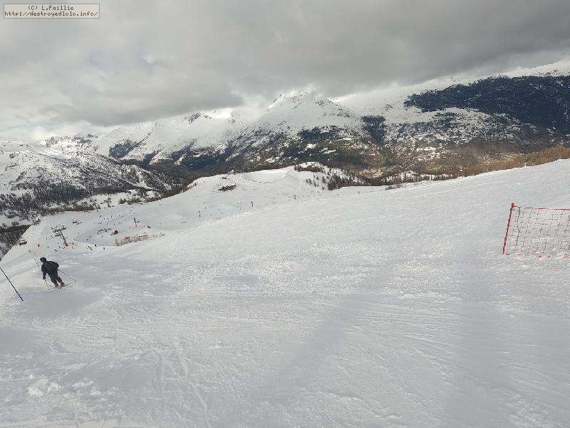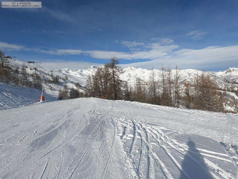 La journée débute sous un grand soleil et le domaine est vaste : commençons par l'extrême droite du domaine, Monêtier. Les pistes restent bien verglacées à toute altitude à cause du passage des nombreux touristes.