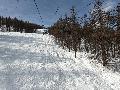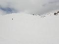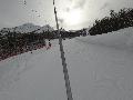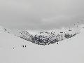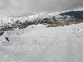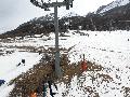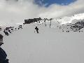 A l'arrivée sur le front de neige, on voit déjà qu'on va changer d'ambiance : la verte qui permet aux débutants de redescendre n'est plus que terre, la noire résiste encore. Bref, il fait chaud !