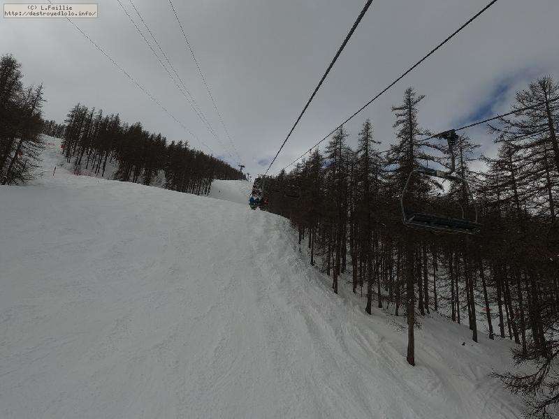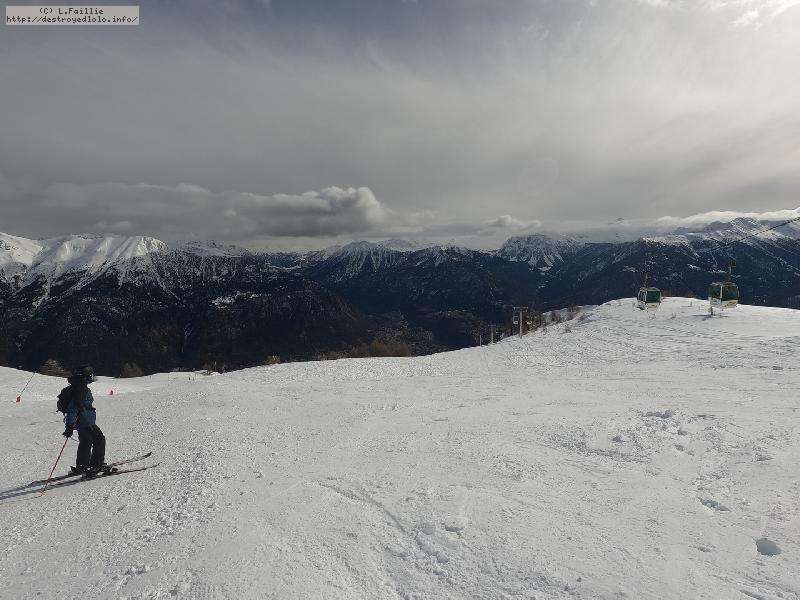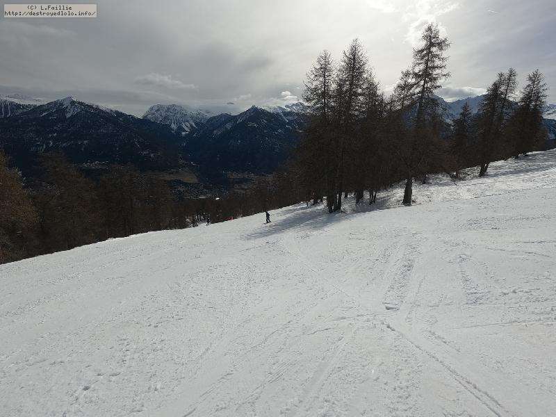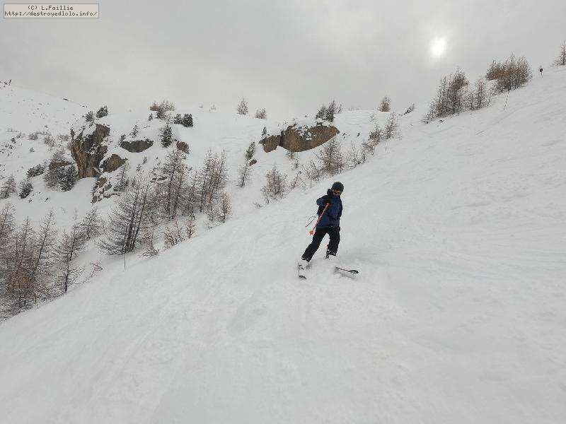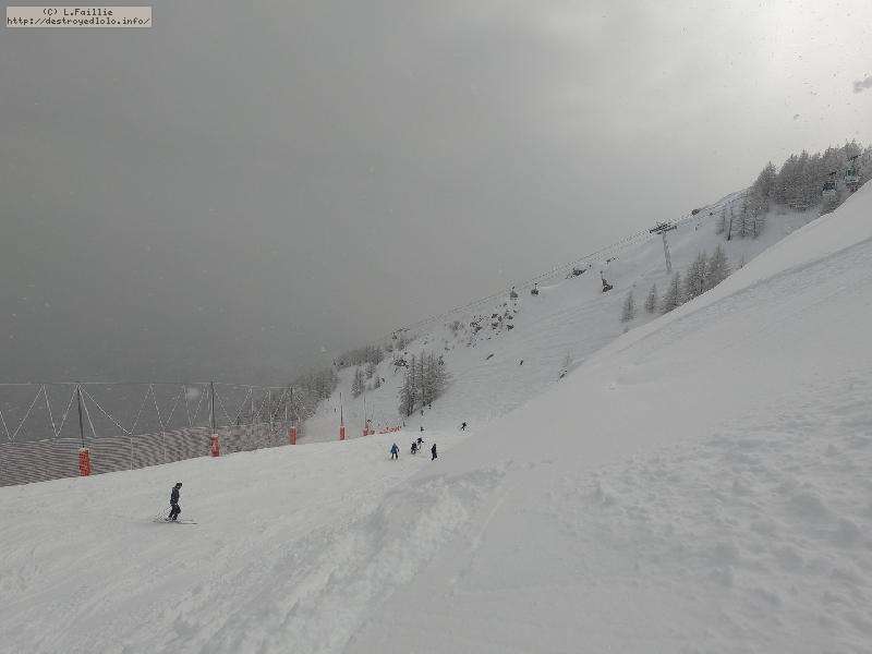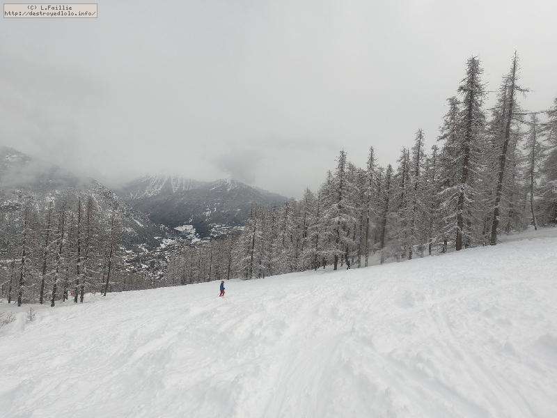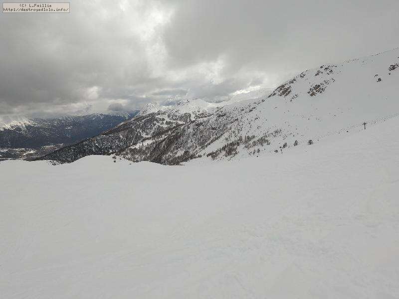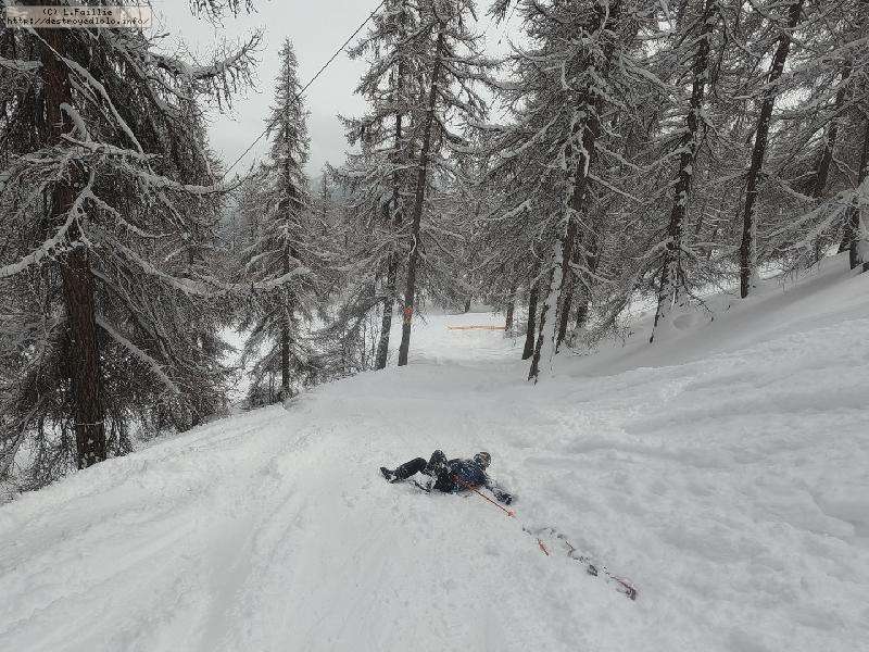 Risque avalancheux à 4/5 : les beaux hors pistes de Monetier d'hier sont fermées, risque trop important, les sommets sont bouchés par les nuages. Qu'importe, on va sur Briançon et là, ou là ... CRACAGE DE SLIP.