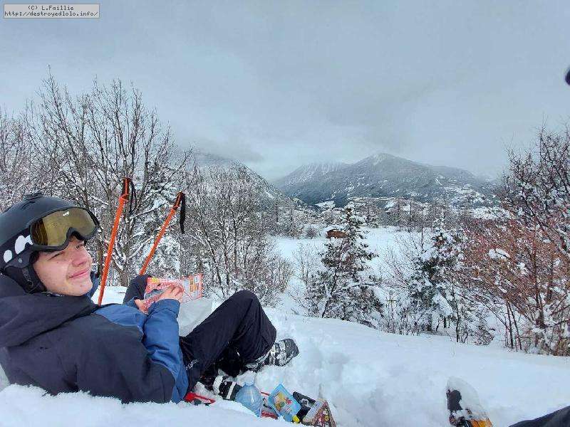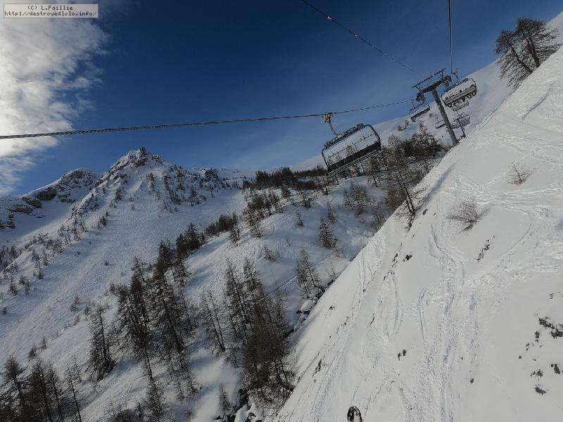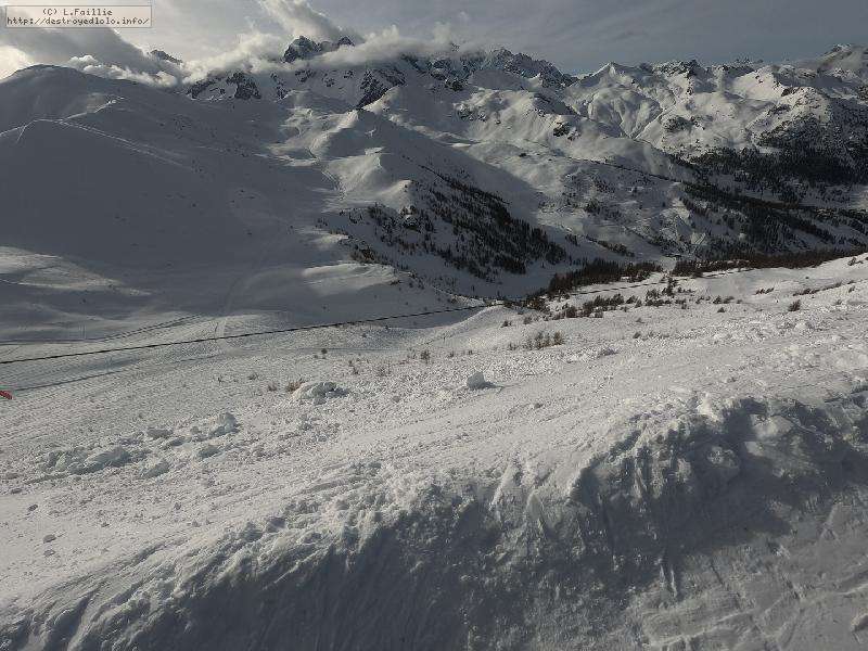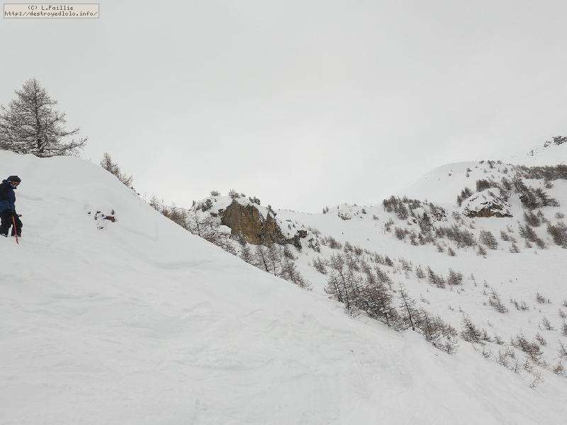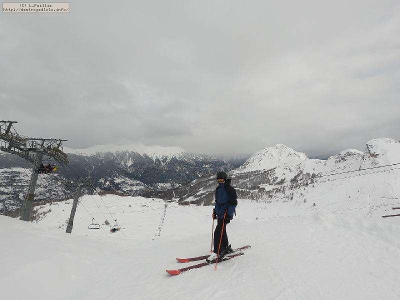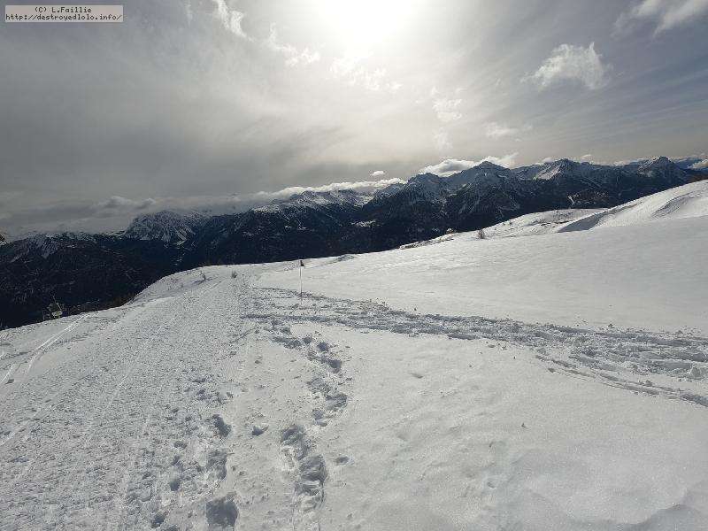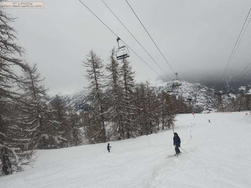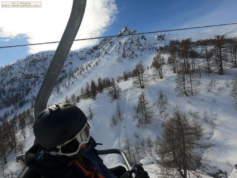 Risque avalancheux à 4/5 : les beaux hors pistes de Monetier d'hier sont fermées, risque trop important, les sommets sont bouchés par les nuages. Qu'importe, on va sur Briançon et là, ou là ... CRACAGE DE SLIP.