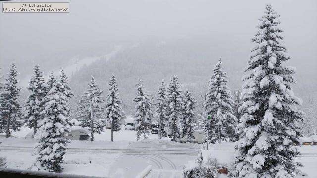 Les premiers flocons tombaient à la fermeture de la veille ... et ça n'a pas cessé de la nuit, on peut même dire que ça a PLÂTRÉ. Le service des pistes annonce 50 cm ... (faut faire attention, bla bla), mais dans certains endroits, y'en a beaucoup plus. Et ils continuent à tomber !