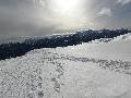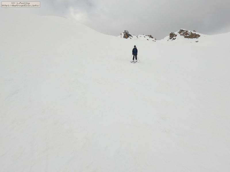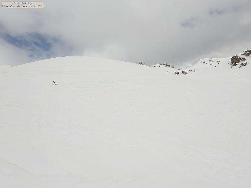 Plus haut, il reste une grosse couche en hors piste, mais une couche qui devient plus lourde : bha, on ira quand même y finir ce qui nous reste de jambes.