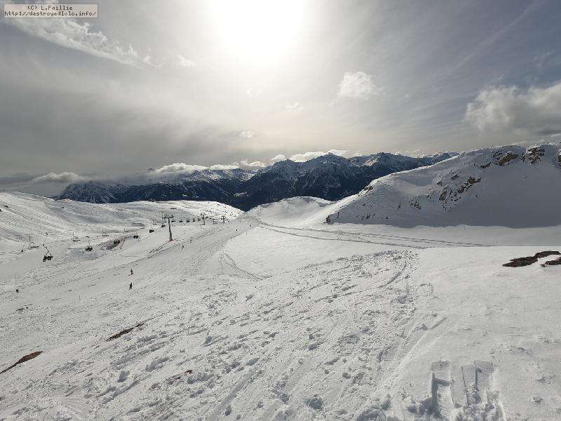 On ne sera pas beaucoup sur les pistes : sur le haut, il y a une peuf pas croyable dès qu'on sort, C'EST LE PIED ! Mention particulière pour le "col du vent", le bien nommé, où la noire et ses hors pistes sont simplement ORGASMIQUE : légère, profonde, ça arrache sa maman !