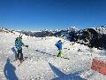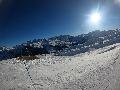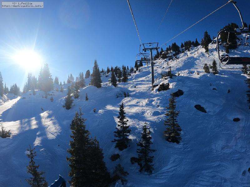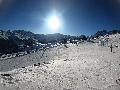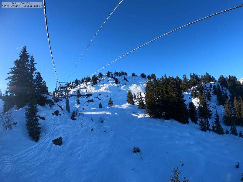 Pas beaucoup de neige au parking à 1080m à tel point que la piste Grand Mont est fermée : il faudra soit redescendre par les sièges, soit faire le tour par le boulevard, elle aussi fermée mais quand même skiable.