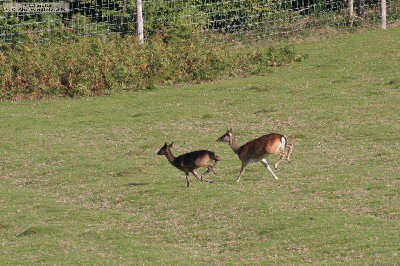 Dès l'arrivée, on est dans l'ambiance avec un véritable troupeau de cervidés qui nous accueillent ... Et arrivé au gîte, nous retrouvons les 2 cerfs quasiment domestiqués que nous avions vu l'année précédente : s'ils ne fuient plus l'Homme, ils gardent quand même leurs distances.