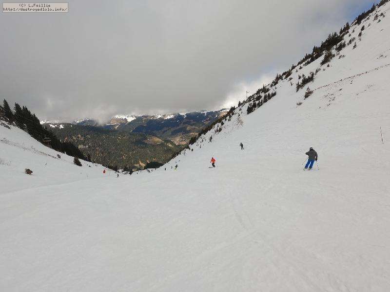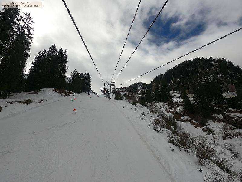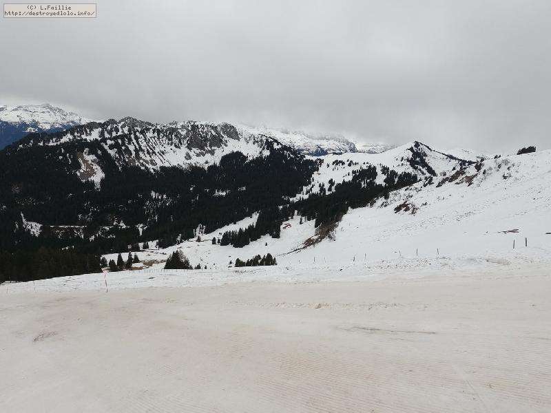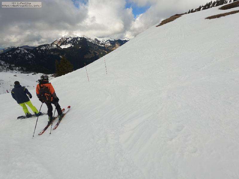 Nous débutons par "Super Châtel" par qui nous avait échappé la veille. Heu non, en fait : plus bas que le reste du domaine, la terre est omniprésente sur les rares pistes encore ouvertes.