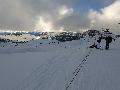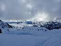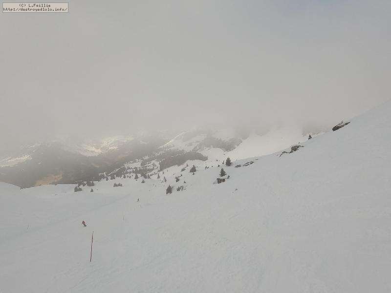 On passe de l'autre côté : Les dameuses ont fait le taf et la neige se tient mieux que la veille avec une légère baisse des températures. Et on peut même sortir des pistes (même si la neige à du mal à tenir sur les pentes les plus fortes).
