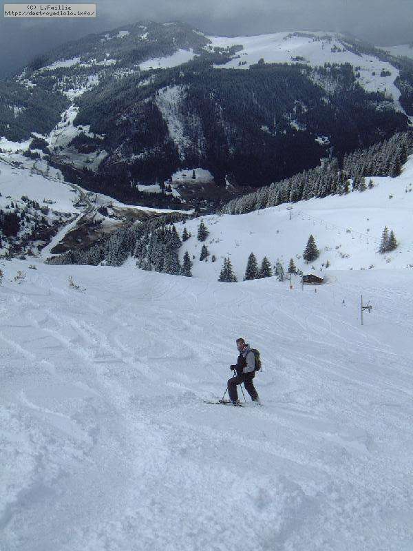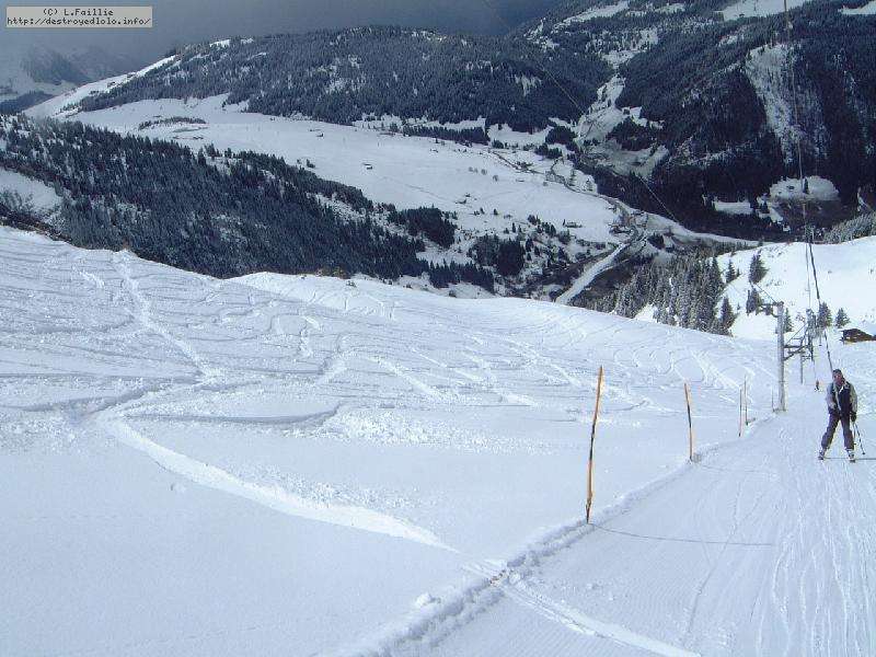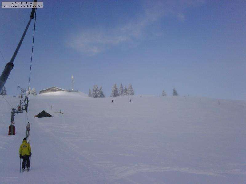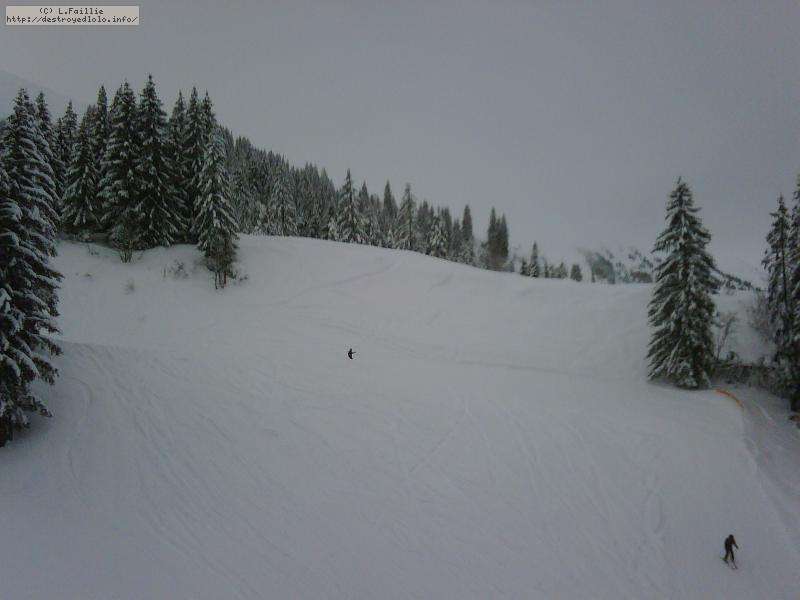 Mauvaise nouvelle, Fernuy est fermée à cause d'une coulée : qu'importe, pour une fois, les pistes de l'Aiguille sont excellentes : merci aux 8 cm tombés la veille.