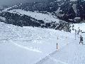 Pendant que Joris prend son dernier cours, Papa et les autres parents font la combe de Borderant : le froid est moins saisissant mais le vent de ces derniers jours fait que la neige est très dure.
