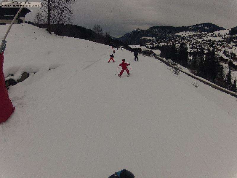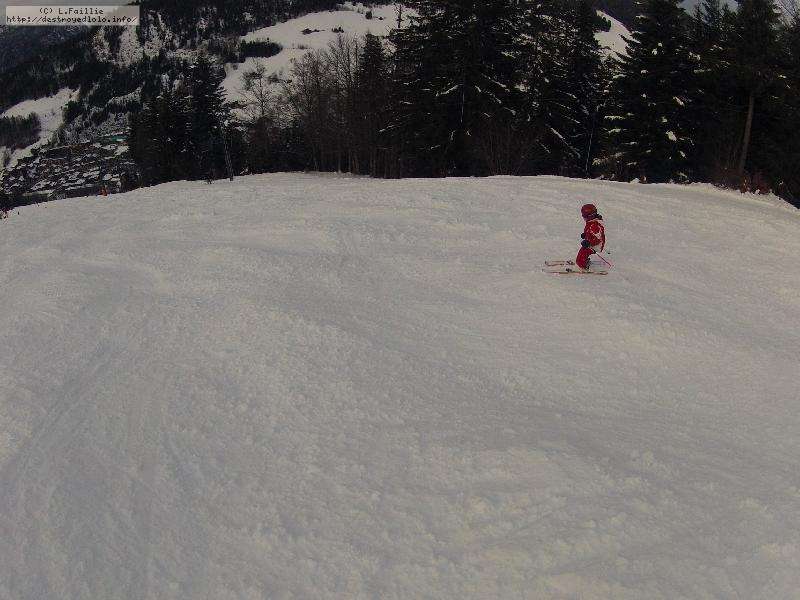 Papa y va molo au début, mais vite, le naturel reprend le dessus : les descentes s'accélèrent, un peu de trafole (pas de douleur, pas de problème), et même un petit passage en peuf, mais elle est trop physique : ça sera pour plus tard.