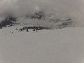 Arrivé à la station, on se dit ... "mais qu'est-ce qu'on fout là ? Nuages, vent, flocons ...". Mais on chausse quand même ...