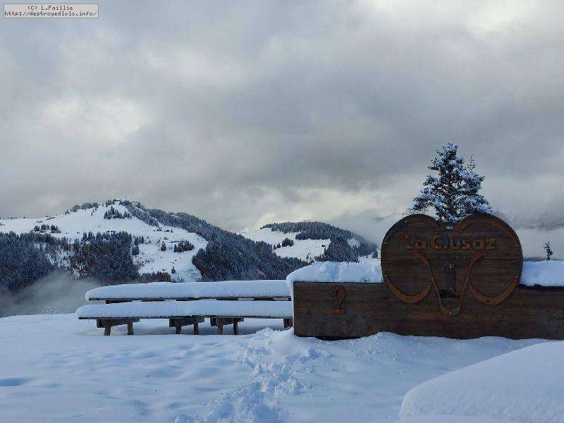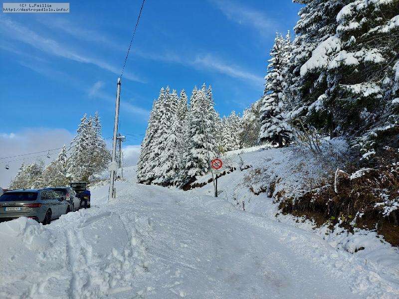 Petit coup d'œil aux webcams ... QUOI !!! Mais c'est de la balle : le parking de Balme est ... blindé (si si, un 11 novembre), plein de skieurs. Moins de monde au Cret du Merle mais ça monte quand même. Allez, on mange à l'arrache, on sort tout le matos à l'arrache et on fout tout ça à l'arrache dans la tuture qui bien sûr n'a pas encore de pneus neiges (hhhhooouuuu !).