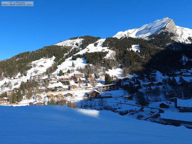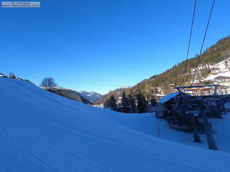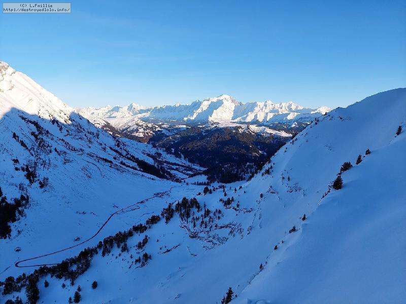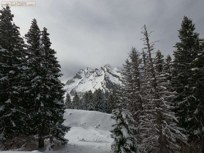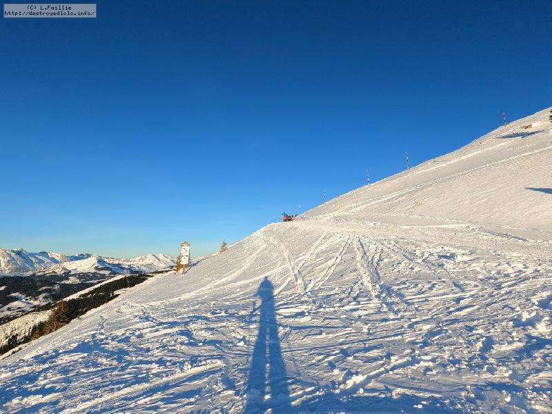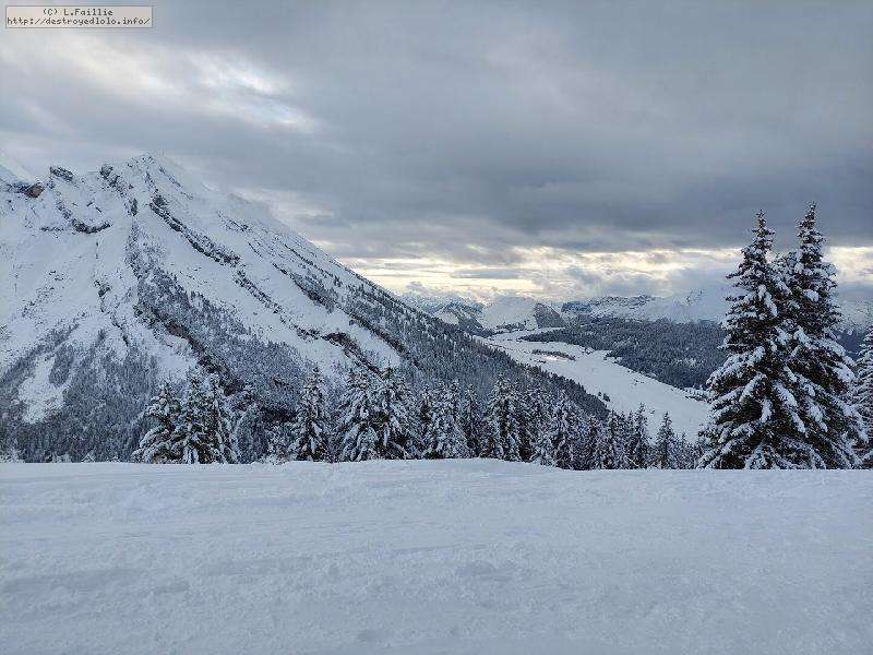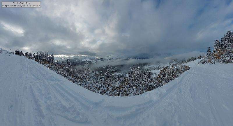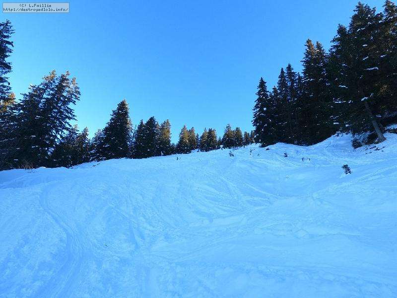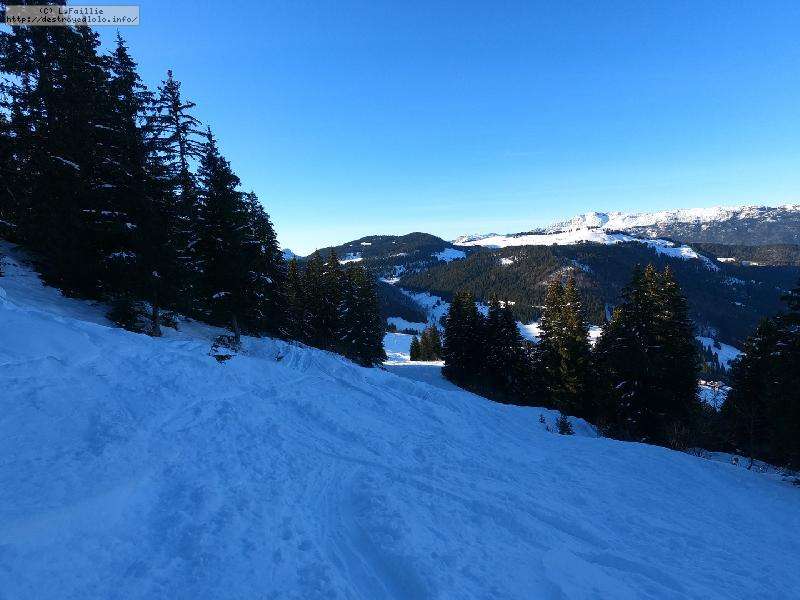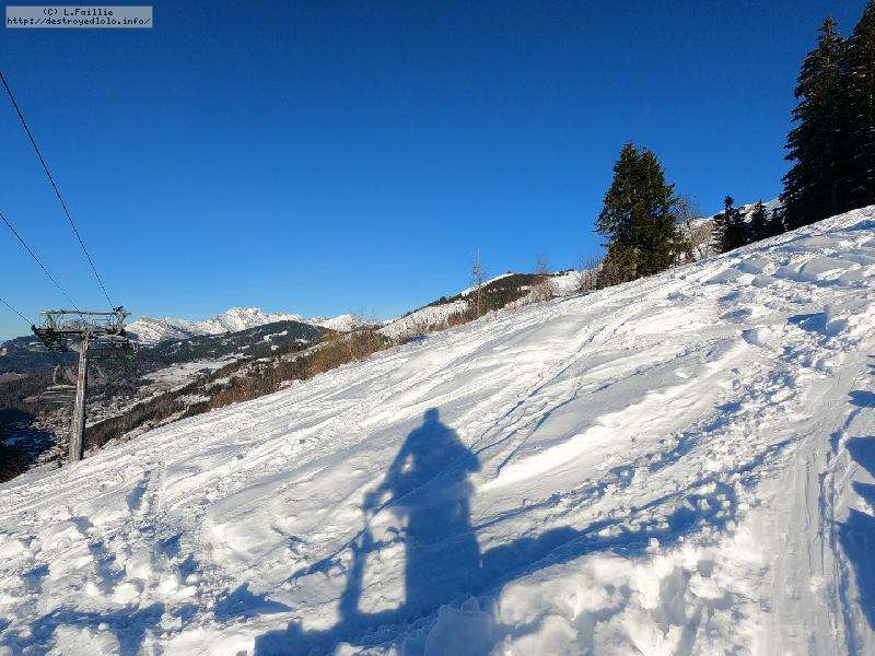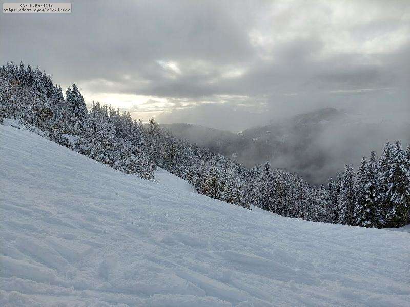 La neige s'améliore avec l'altitude, jusqu'à un bon 30 cm peuffient sur la noire "Tétras" par laquelle j'arrive jusqu'au belvédère.