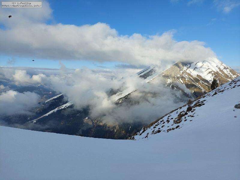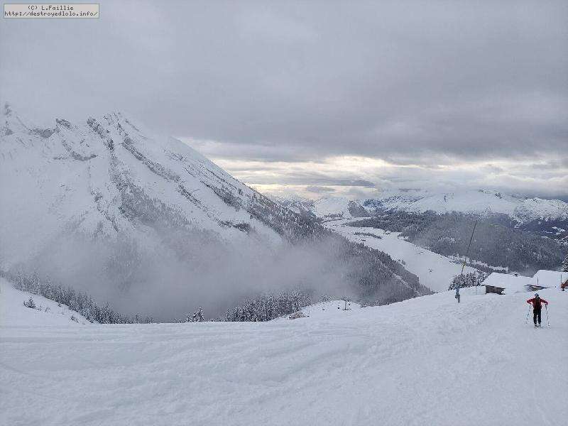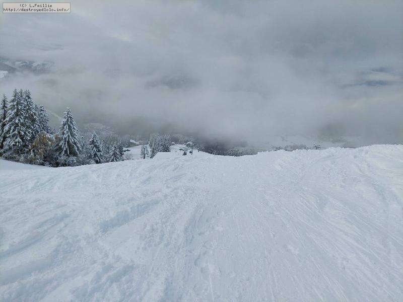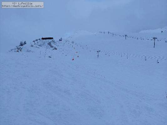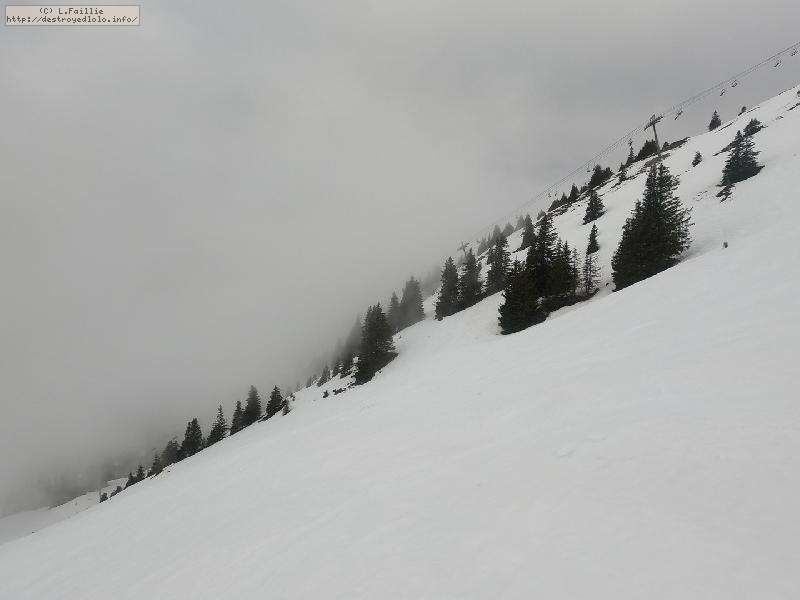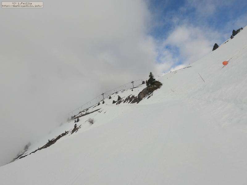 Il resterait des coins à faire ... si on y voyait quelque chose, car des nuages se sont agglutinés sur les sommets : une bonne partie de la journée, il fallait jouer entre Balme et Torchère pour y voir quelques choses ... et j'en ai bien profité ! Mais à 15h, brouillard et tempête de neige généralisée (m'en fout, mon forfait 4h est fini ).