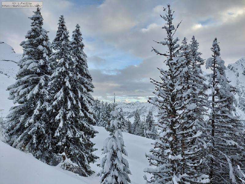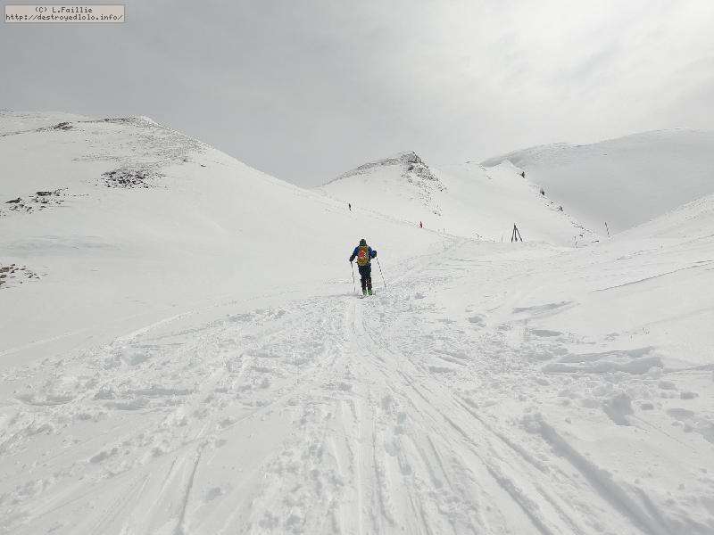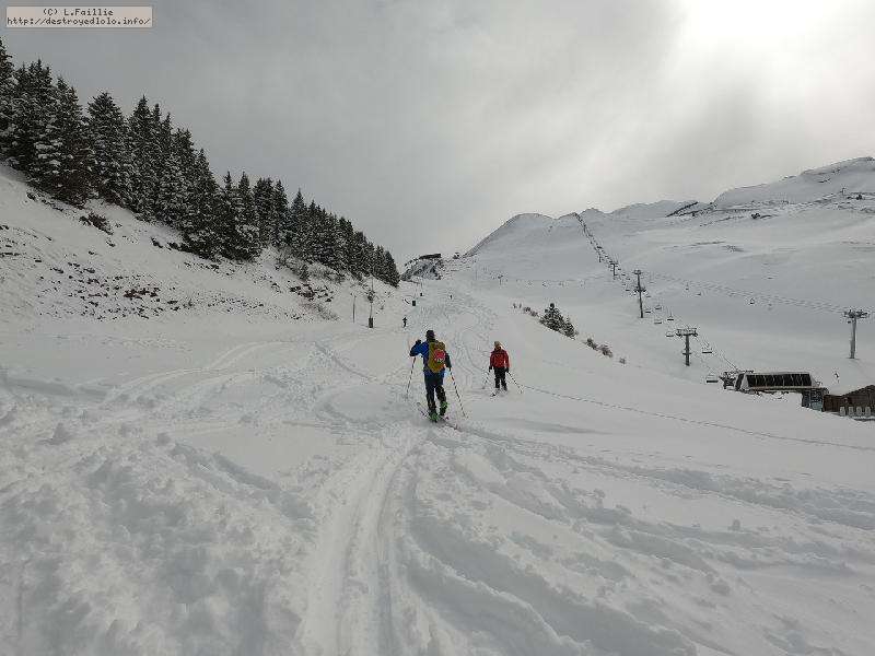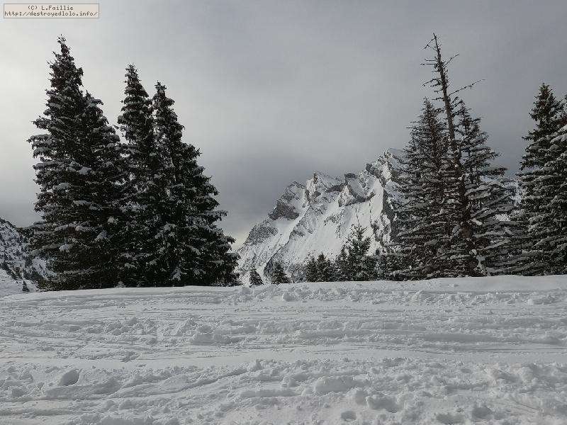 Belle couche de peuf partout sur tout le massif, mais bien tracée, partout, le tout sous un plafond de nuage ... au début.