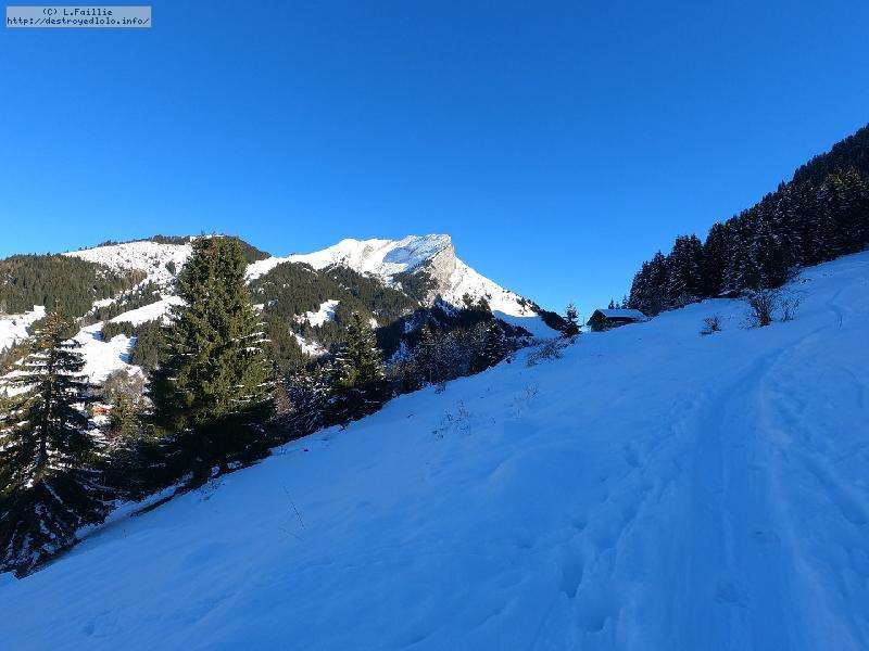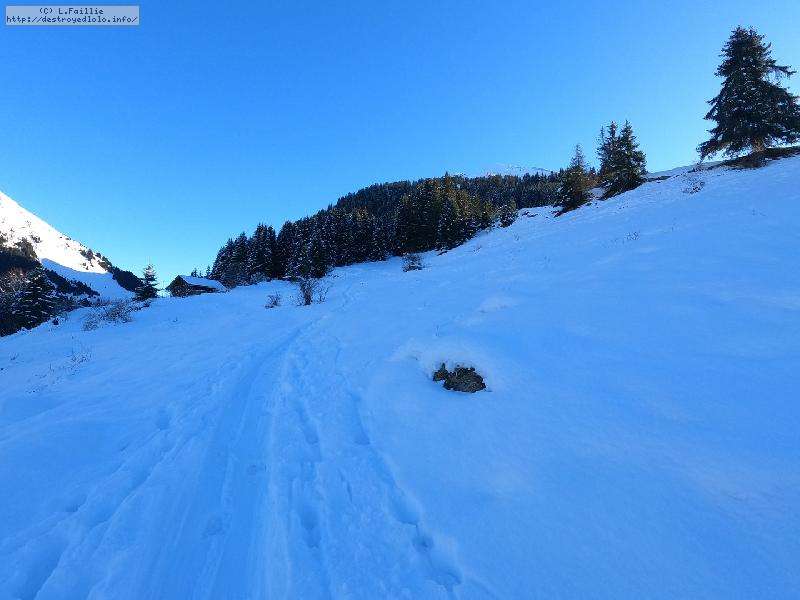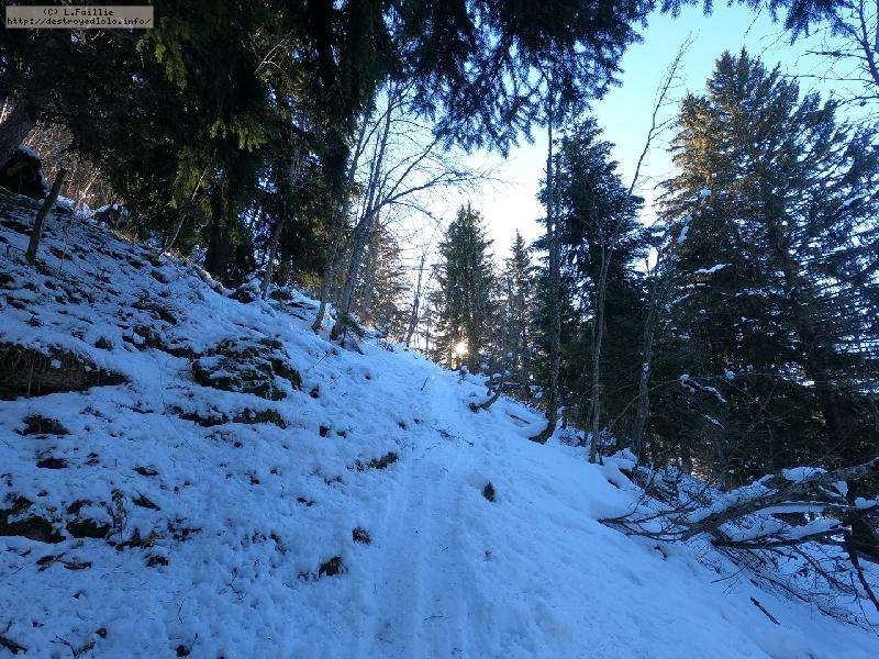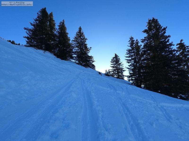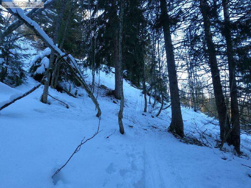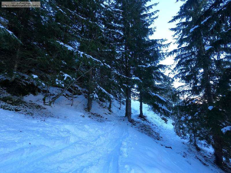 A partir de là, je monte dré dans l'pentu dans les sapins à côté de la Régine ... ca casse bien les pattes, car bien pentu (pour moi) surtout que la neige a tendance à se dérober.