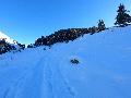 La descente sera plus douloureuse : si la neige n'est pas mal, juste un peu croutée, mais ca va. Ce qui va moins, c'est que j'ai peur de tomber sur mon doigt cassé, et, comme d'hab, j'ai les jambes tétanisées. Qu'importe : que ça fait du bien de glisser !